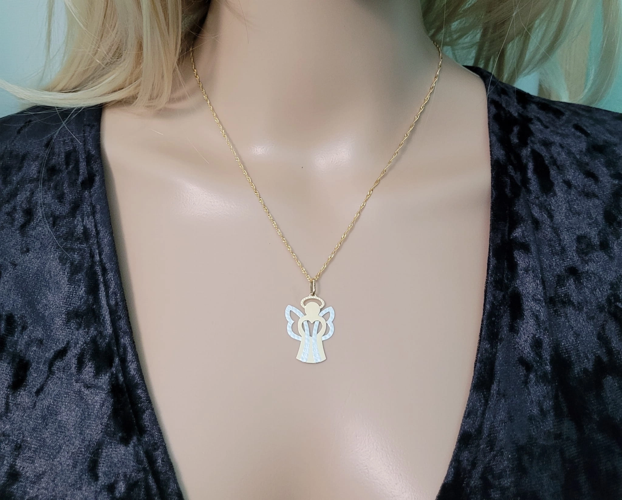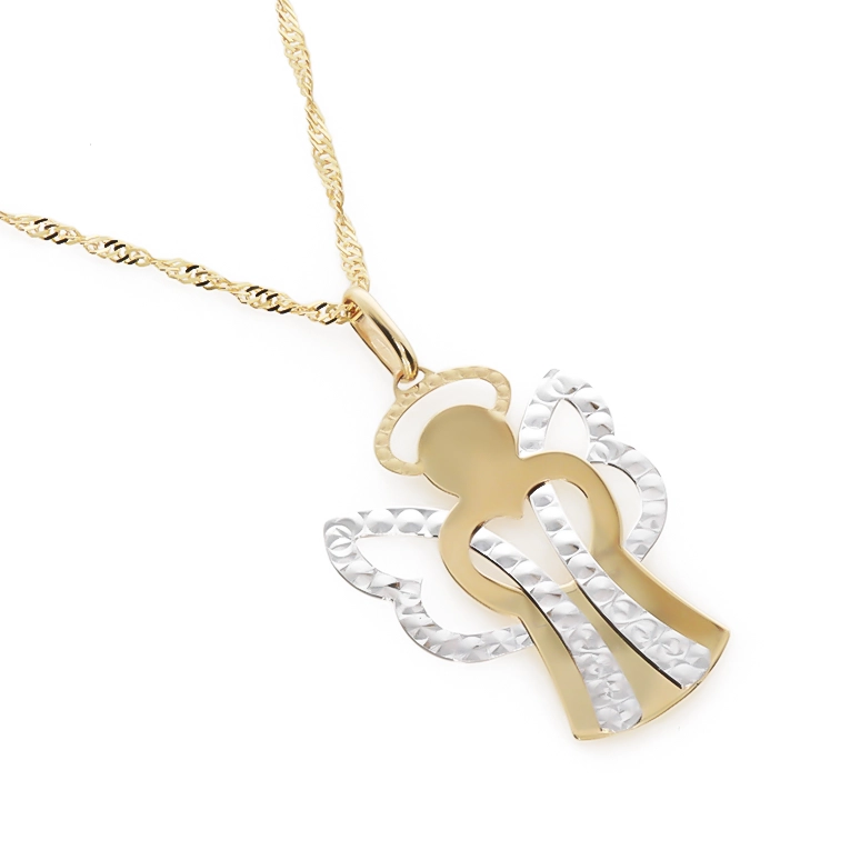 Dviejų spalvų aukso angelo pakabukas vaikams ir moterims 585