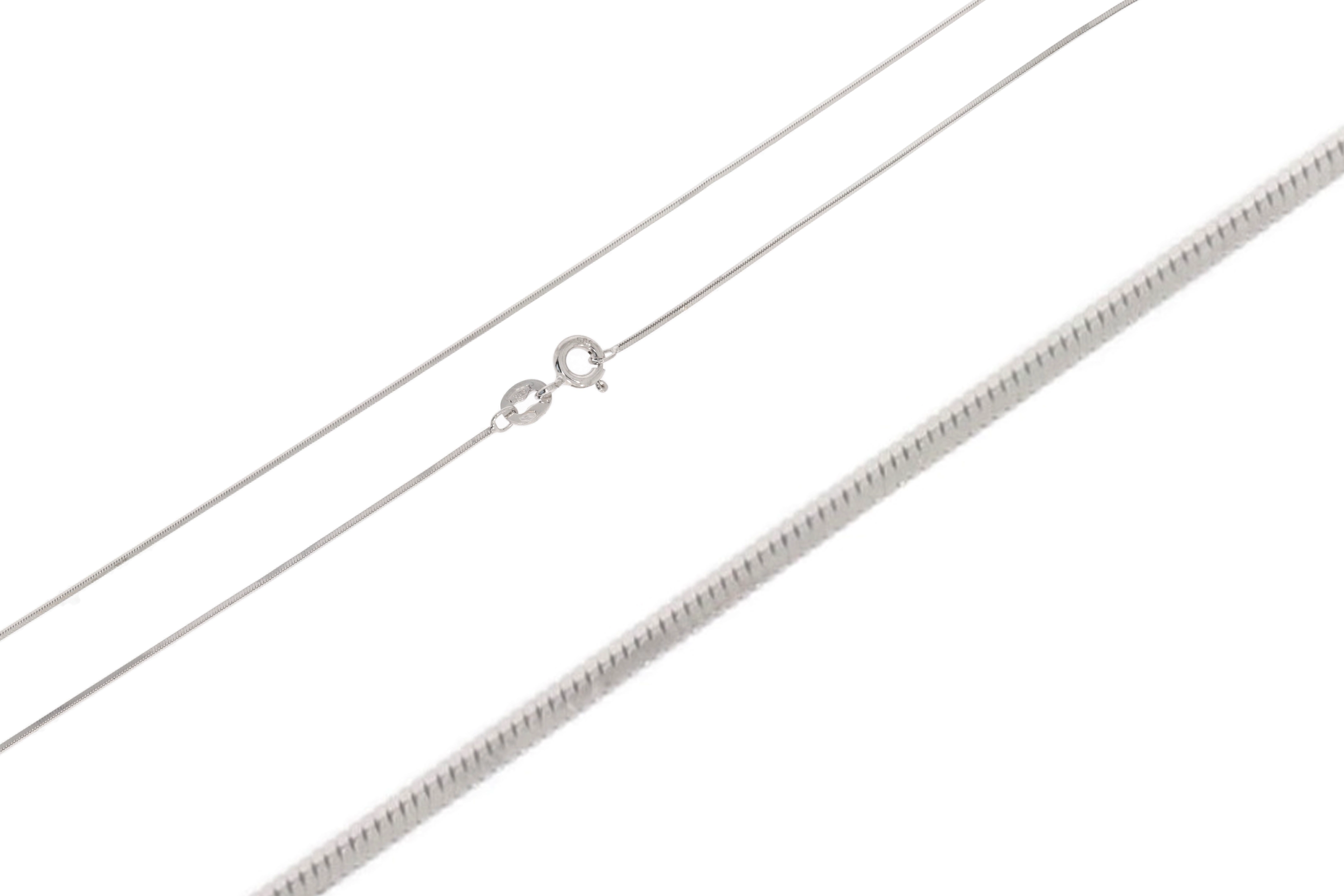 Kruopščiai pagaminta iš aukščiausios kokybės 585 prabos baltojo aukso, ši grandinėlė pasižymi tvirtu ir lanksčiu Snake pynimu, kuris švelniai priglunda prie odos, suteikdamas komforto jausmą. Jos plotis – 1 mm, todėl ji atrodo subtiliai ir elegantiškai, neperkraunant bendro įvaizdžio. Tai puiki dovana moteriai, vertinančiai klasiką, ilgaamžiškumą ir išskirtinį dizainą. Padovanokite šią grandinėlę gimtadienio, jubiliejaus, Valentino dienos ar bet kuria kita proga, ir leiskite jai tapti brangiu prisiminimu bei stilingu akcentu.