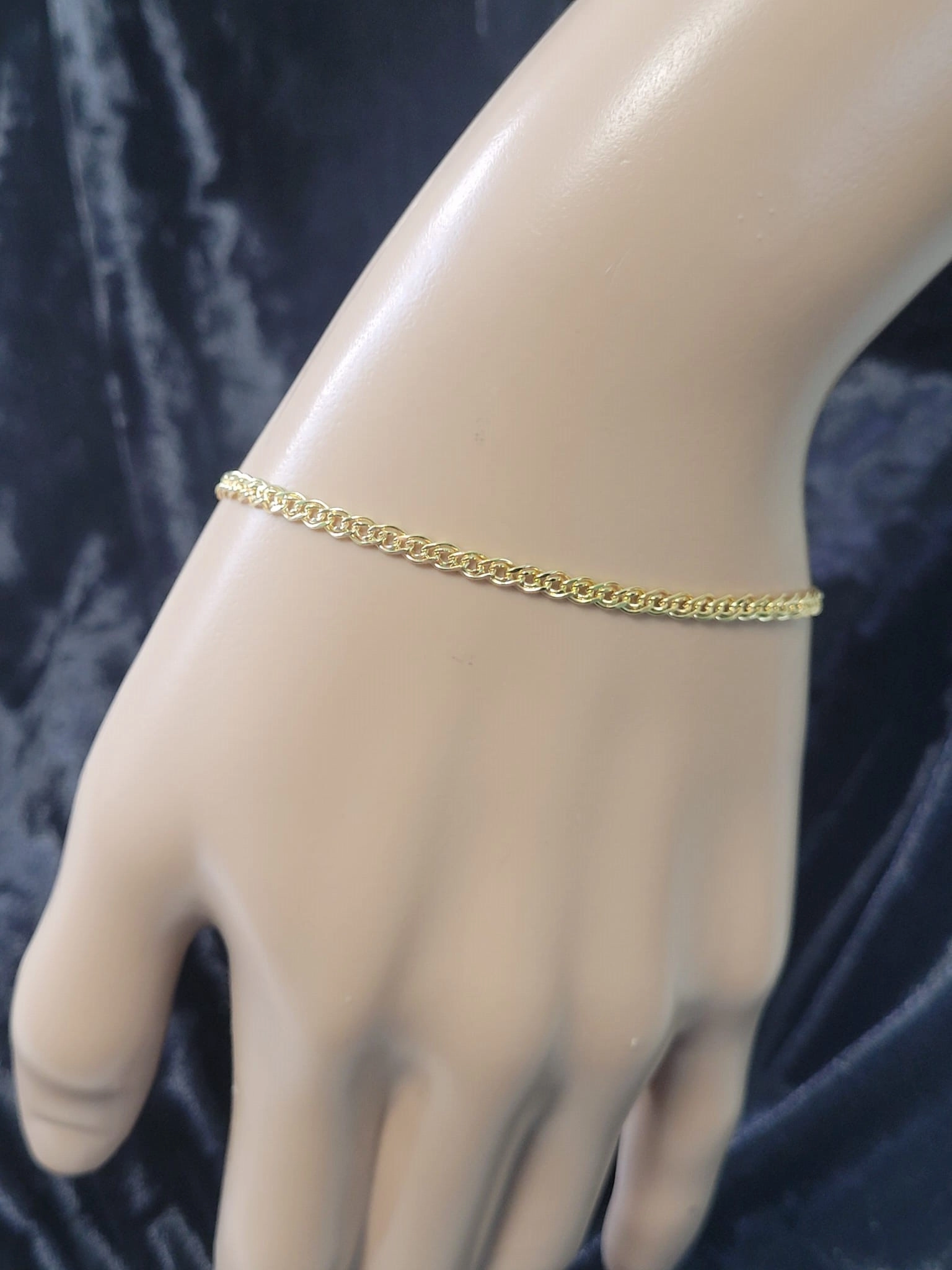 Atraskite eleganciją ir nesenstantį grožį su šia nuostabia geltono aukso apyranke, sukurta moteriai, kuri vertina subtilumą ir kokybę. Pagaminta iš aukščiausios prabos 585 geltono aukso, ši apyrankė spinduliuoja šiluma ir prabanga, puikiai papildydama bet kokį įvaizdį.