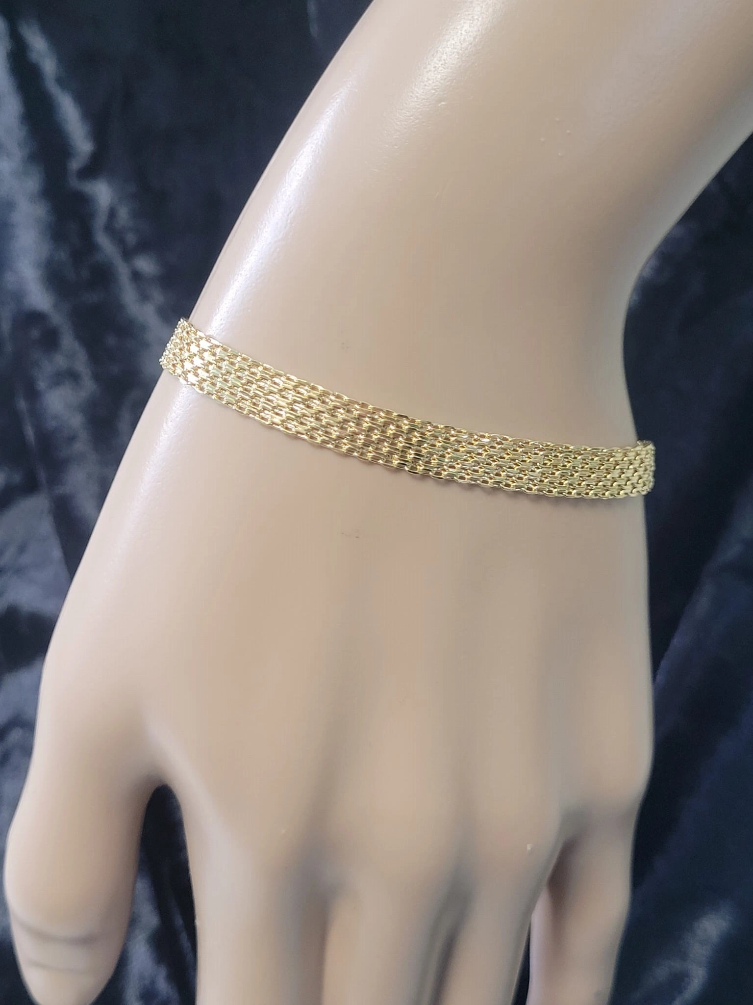 Pristatome Jums elegantišką moterišką geltono aukso apyrankę, kuri taps nepakeičiamu Jūsų stiliaus akcentu. Ši apyrankė, pagaminta iš aukščiausios kokybės 585 prabos geltono aukso, spinduliuoja prabanga ir rafinuotumu, pabrėždama Jūsų unikalumą ir puikų skonį.