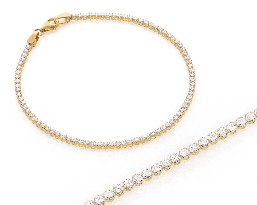 Ši apyrankė, kurios plotis siekia 2 mm, pasižymi klasikiniu, bet kartu ir moderniu dizainu, kuris lengvai derės prie įvairių stilių – nuo kasdienio iki šventinio. Blizgūs cirkoniai, įtvirtinti visame apyrankės perimetre, sukuria akinantį efektą, atspindėdami šviesą ir pritraukdami žvilgsnius. Tai puiki dovana sau ar mylimam žmogui, norint išreikšti dėkingumą, meilę ar tiesiog nustebinti.