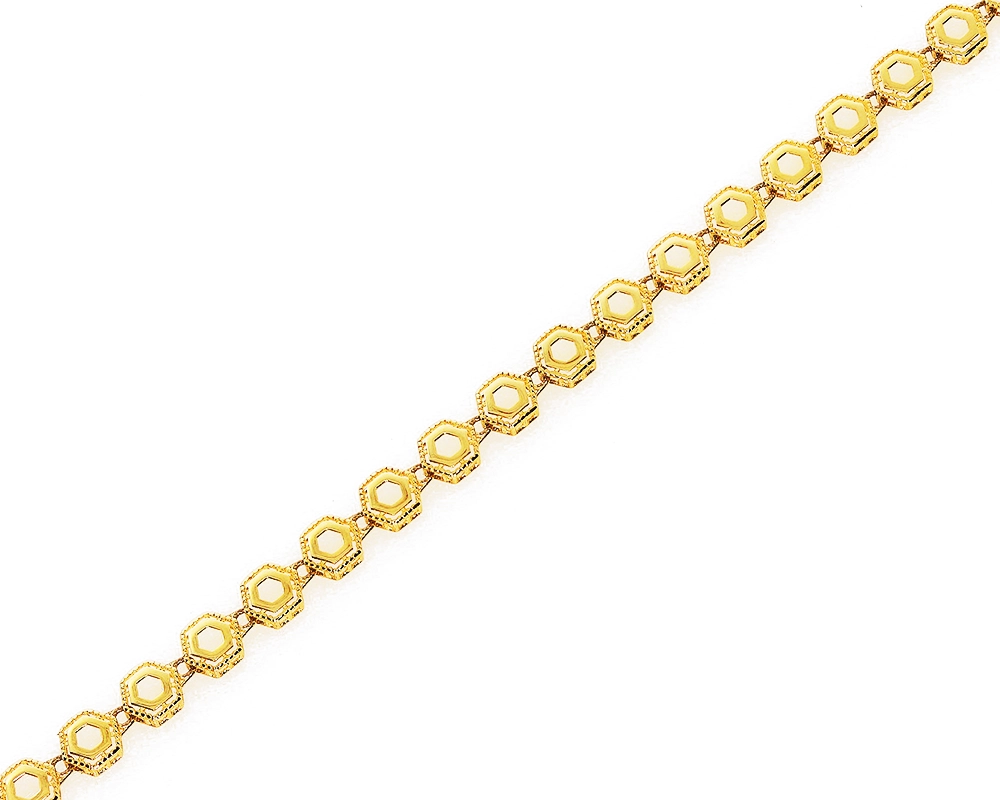 Elegantiška moteriška geltono aukso apyrankė su šešiakampėmis detalėmis 585