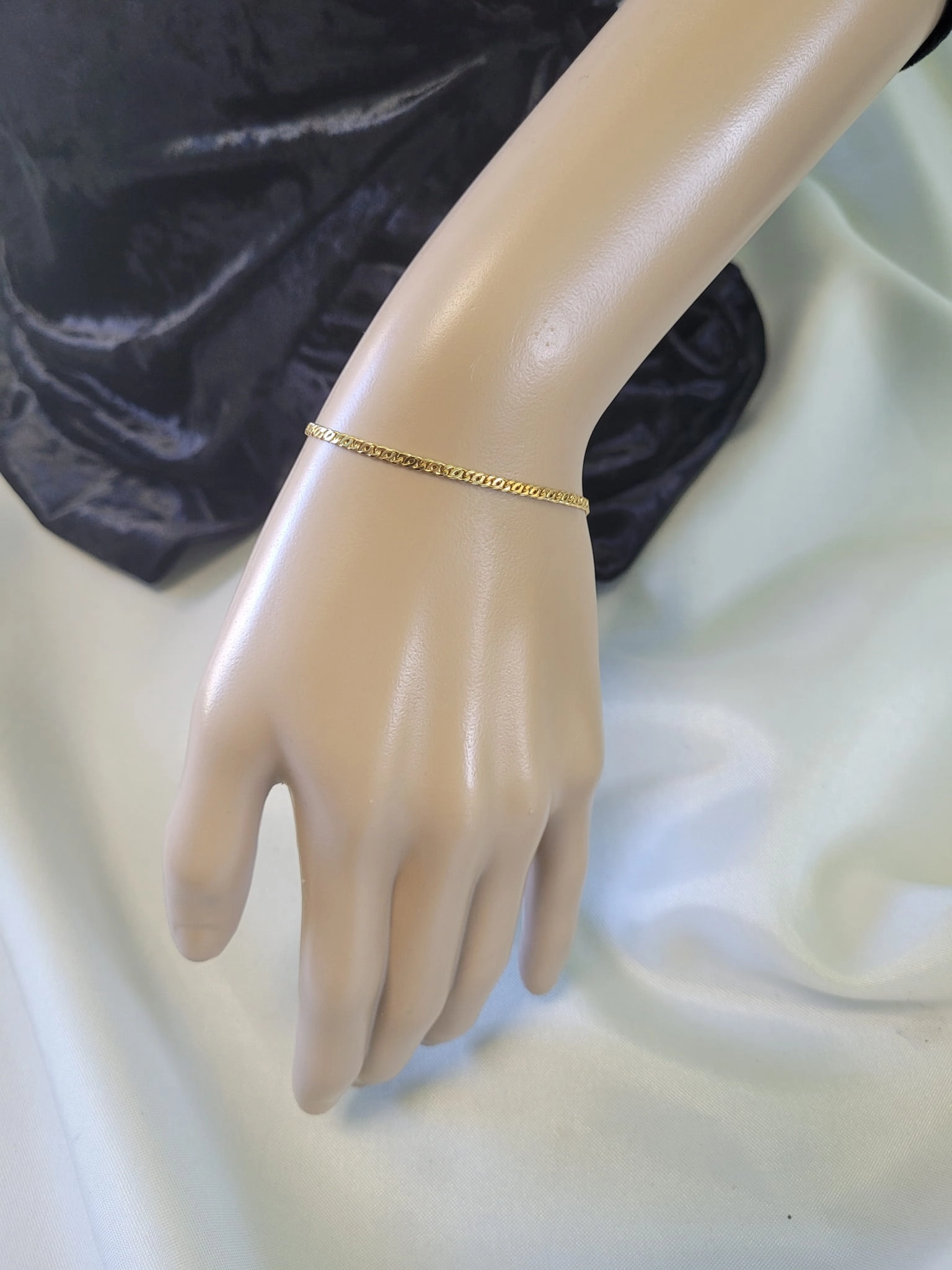 Atraskite nesenstančią eleganciją su šia nuostabia pilnavidure geltono aukso apyranke, kuri taps neatsiejama Jūsų stiliaus dalimi. Kiekviena grandinėlės detalė, pagaminta iš aukščiausios kokybės 585 prabos aukso, atspindi kruopštų meistriškumą ir dėmesį detalėms. Ši apyrankė – tai ne tik papuošalas, bet ir subtilus pareiškimas, pabrėžiantis Jūsų rafinuotumą ir puikų skonį.