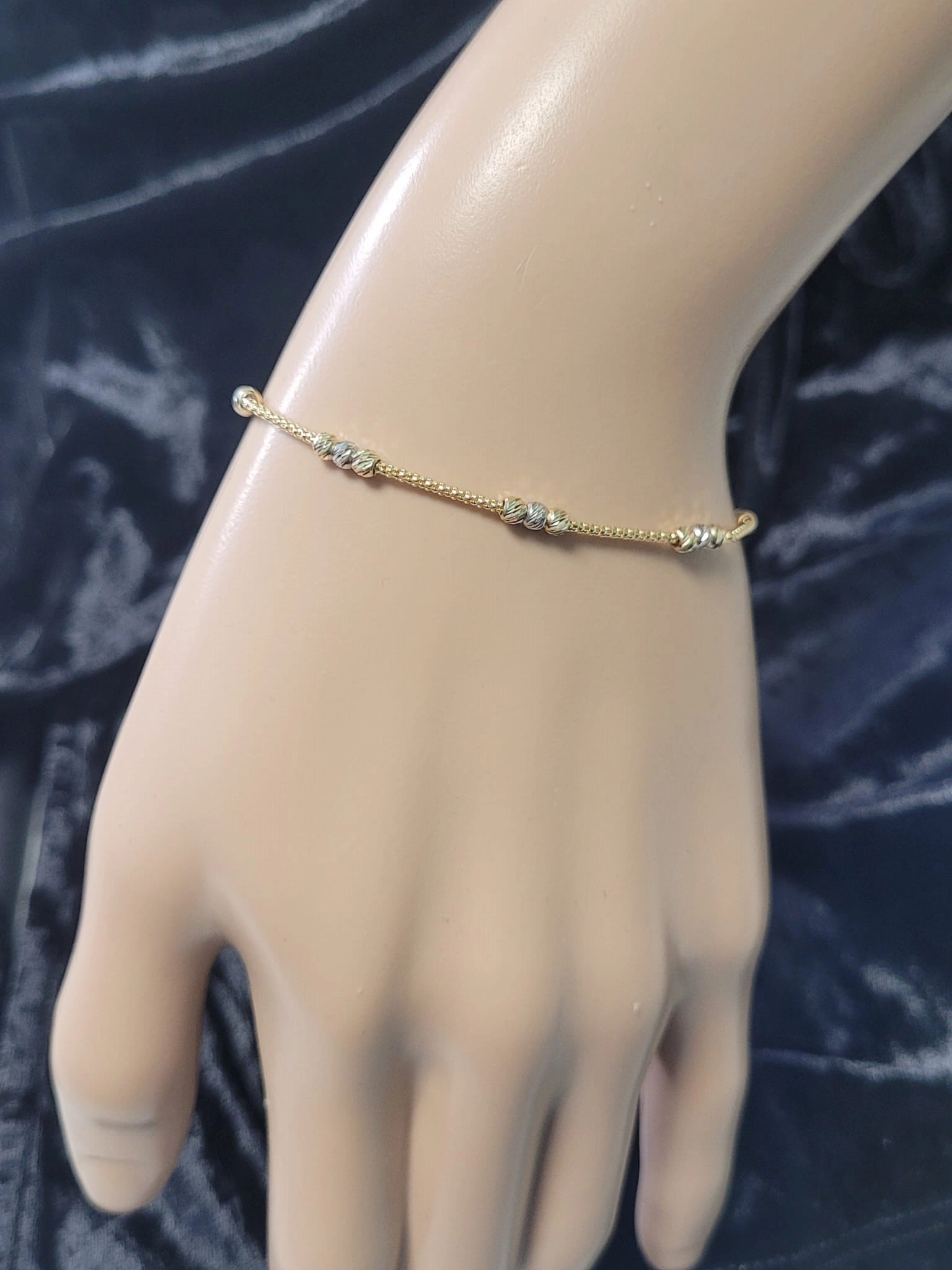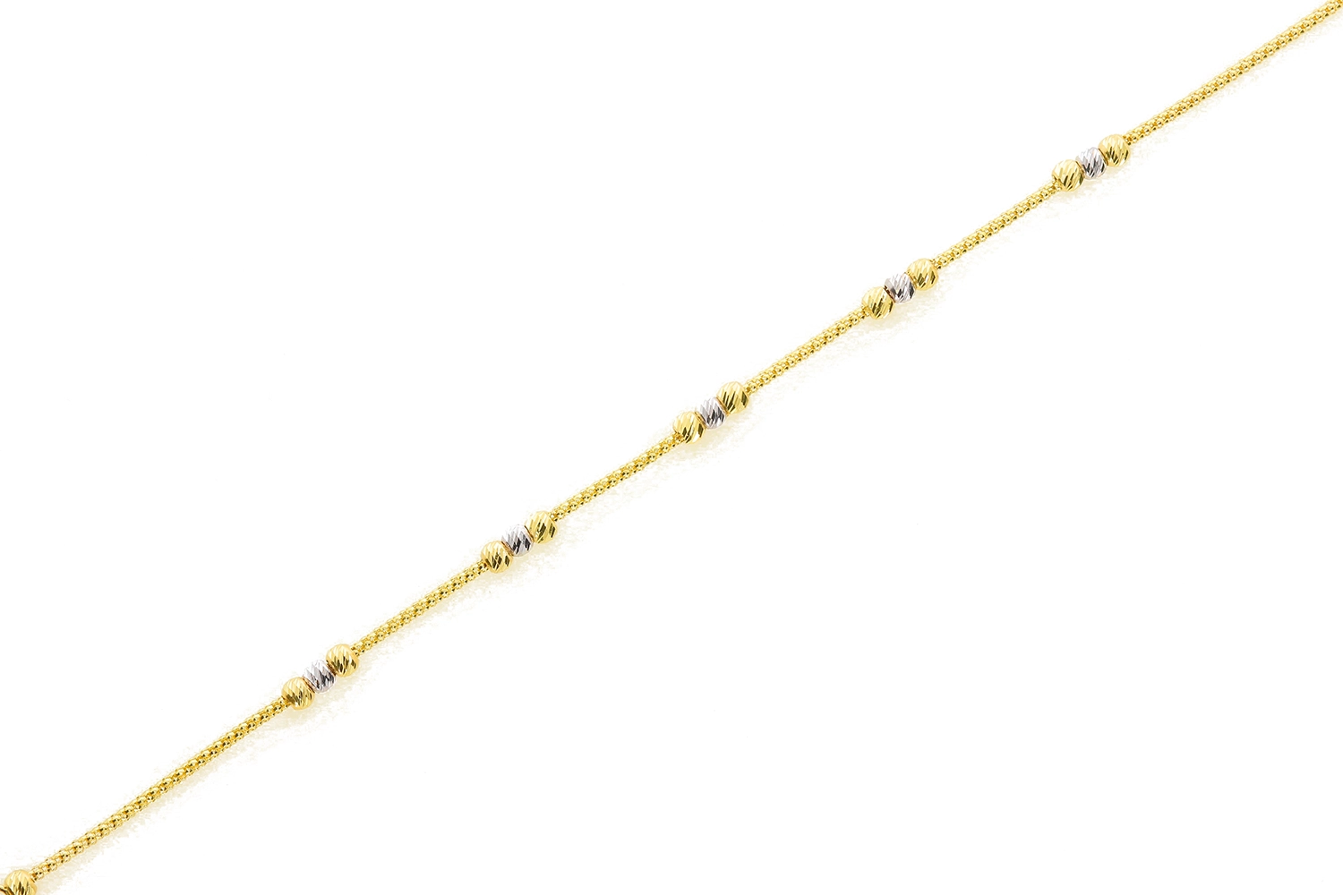 Atraskite subtilų grožį su šia elegantiška moteriška apyranke, pagaminta iš aukščiausios kokybės 585 prabos geltono ir balto aukso. Šis išskirtinis juvelyrikos kūrinys sujungia klasikinį žavesį su moderniais akcentais, sukuriant papuošalą, kuris puikiai tiks tiek kasdieniam dėvėjimui, tiek ypatingoms progoms.