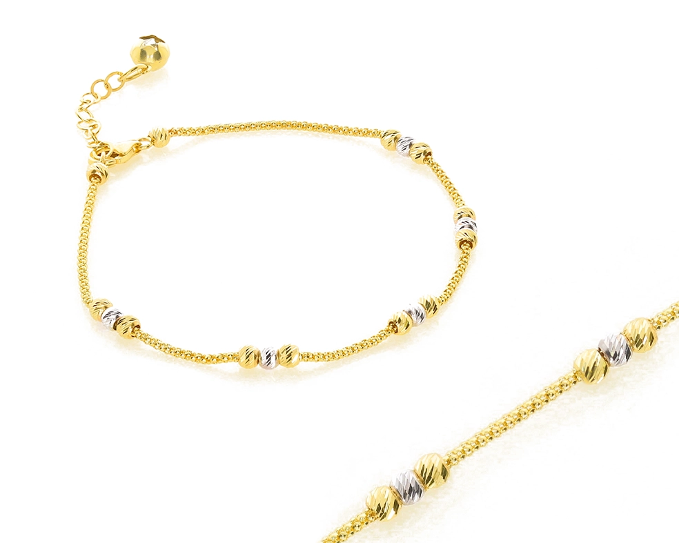 Elegantiška moteriška geltono ir balto aukso apyrankė su burbuliukais 585