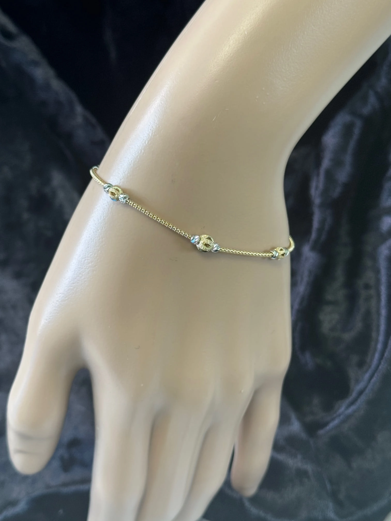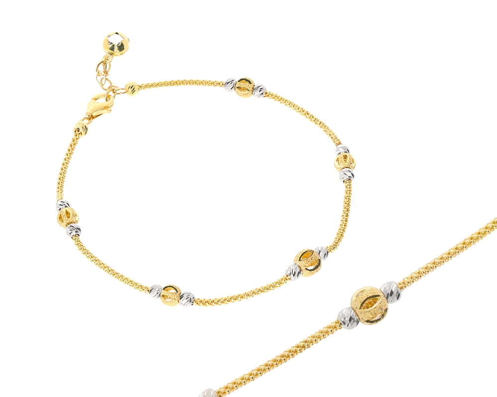 Elegantiška moteriška geltono ir balto aukso apyrankė su burbuliukais 585