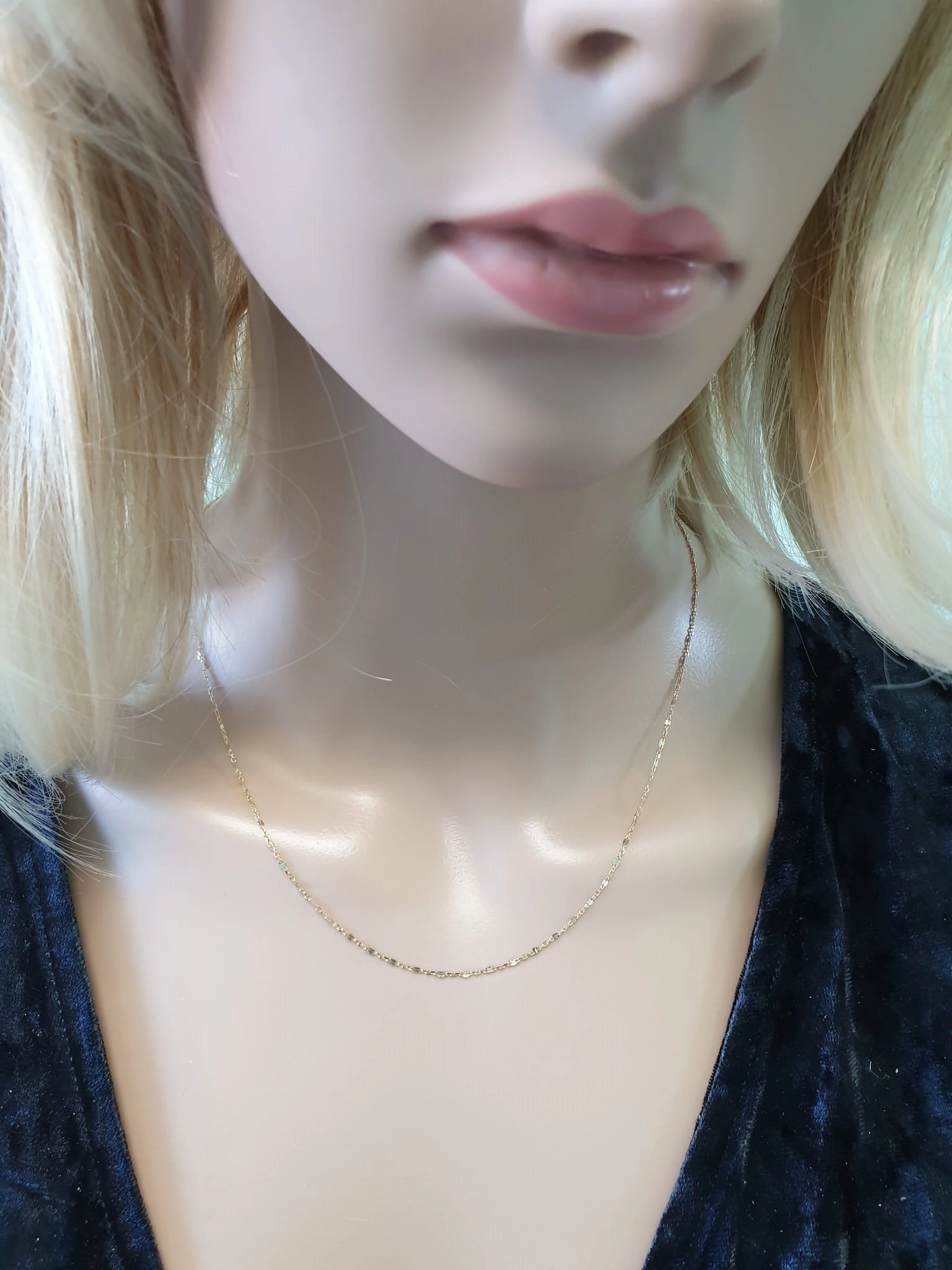 Ši grandinėlė, kurios plotis yra 0,50 mm, pasižymi tvirtu ir patikimu pilnaviduriu pynimu, kuris suteikia jai solidumo ir ilgaamžiškumo. Jos universalus dizainas leidžia lengvai derinti ją su įvairiais stiliais – nuo kasdienio iki šventinio. Tai puiki dovana sau ar brangiam žmogui, norint pabrėžti jo išskirtinumą ir rafinuotą skonį. Leiskite šiai geltono aukso grandinėlei tapti jūsų kasdienio įvaizdžio dalimi, spindinčia elegancija ir pasitikėjimu.