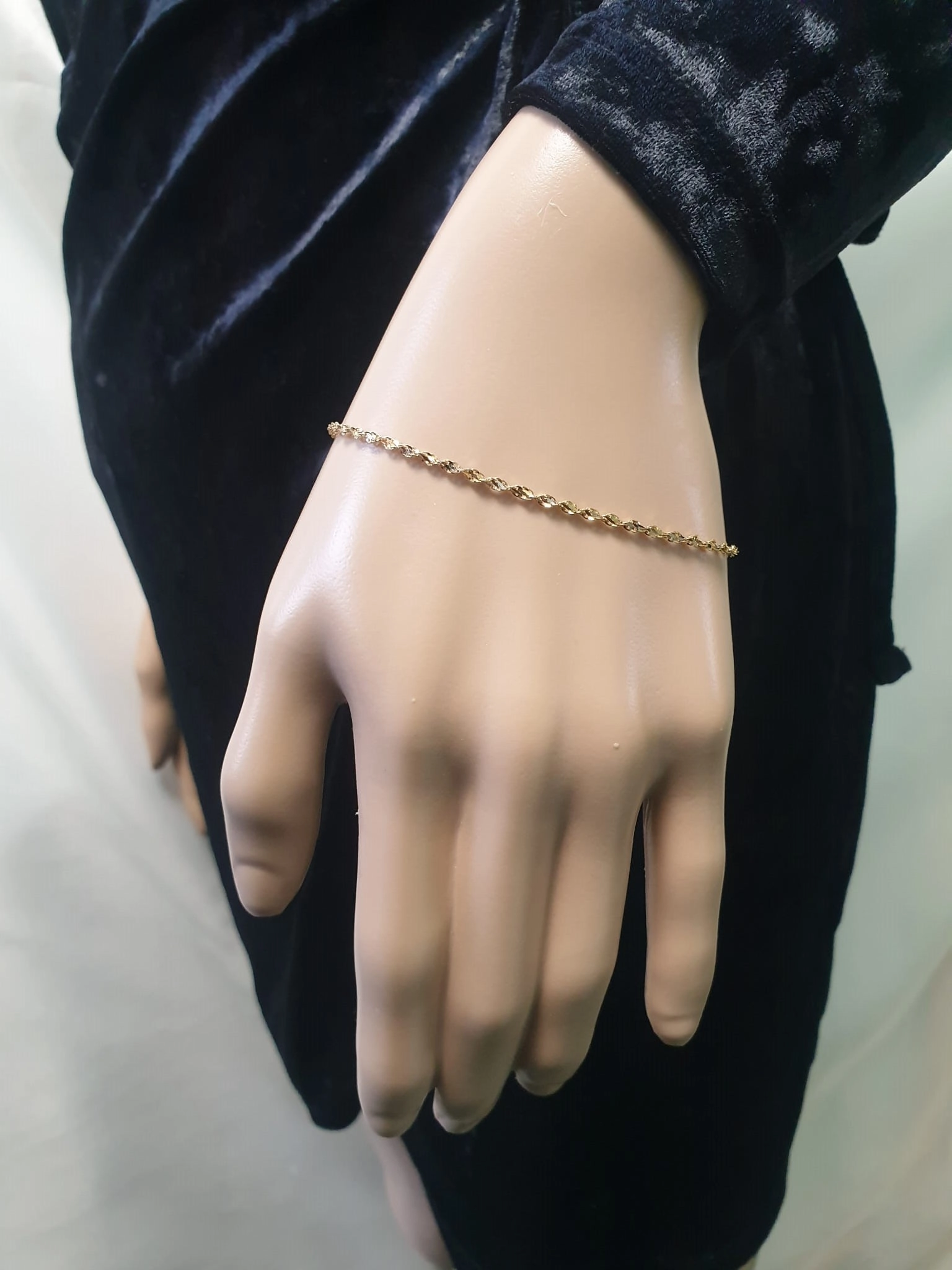 Atraskite nesenstančią eleganciją su šia nuostabia Rope pynimo apyranke, sukurta moteriai, kuri vertina subtilų grožį ir išskirtinumą. Ši apyrankė, pagaminta iš aukščiausios kokybės 585 prabos aukso, yra puikus pasirinkimas tiek kasdieniam nešiojimui, tiek ypatingoms progoms.