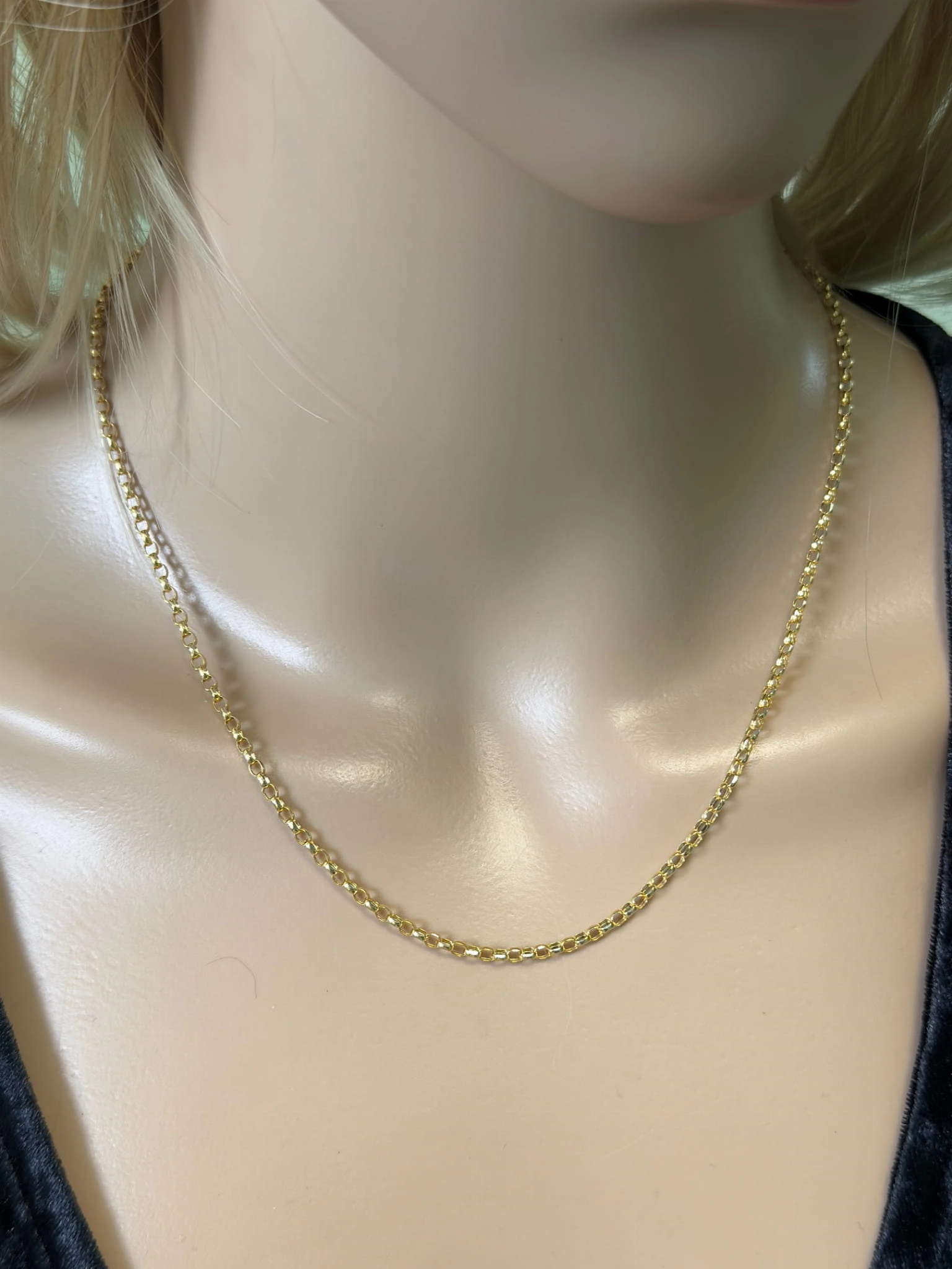 Elegantiška moteriška tuščiavidurė geltono aukso Rolo grandinėlė 585