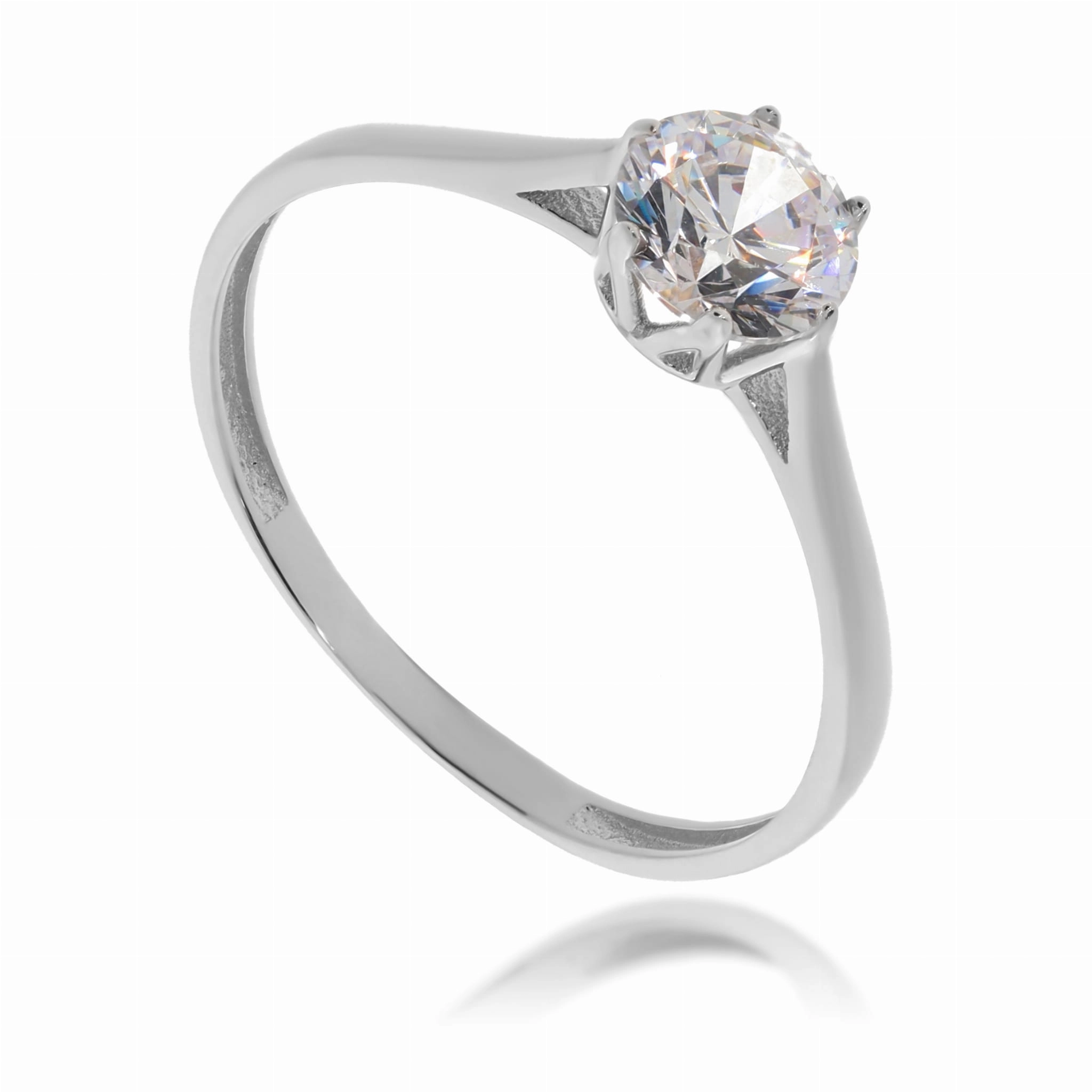 Elegantiškas moteriškas balto aukso sužadėtuvių žiedas su cirkoniu 585