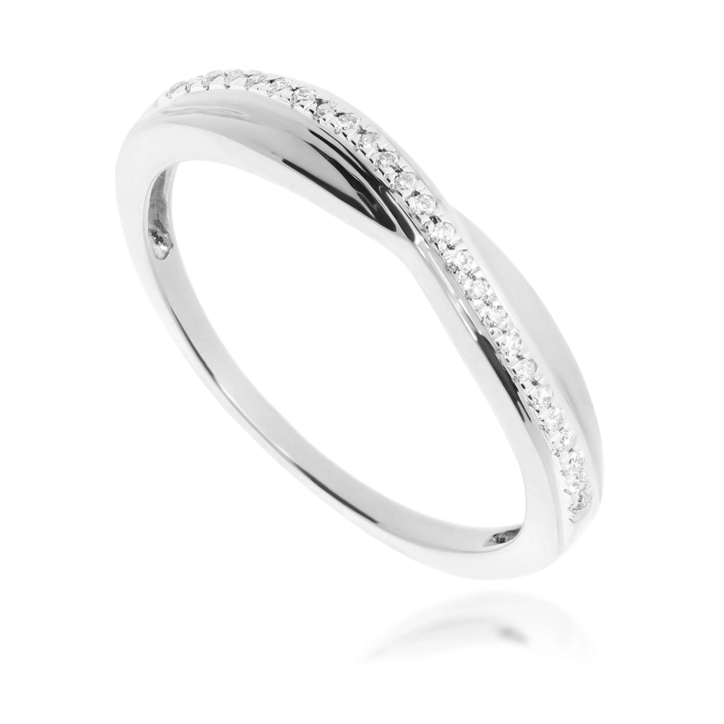Žiedo briauna apačioje yra 1,8 mm pločio, o viršutinė dalis – 3 mm pločio ir ilgio, kas suteikia jam grakštumo ir patogumo. Deimantai, kurių bendra masė siekia 0,14 ct, pasižymi SI1 švarumu ir I spalva, užtikrinančia nepriekaištingą spindesį. Kiekvienas deimantas kruopščiai įtvirtintas, kad maksimaliai atskleistų savo grožį ir sukurtų akinantį šviesos žaismą. Šis žiedas, pagamintas iš 585 prabos balto aukso, yra ilgaamžis ir atsparus, skirtas džiuginti daugelį metų.