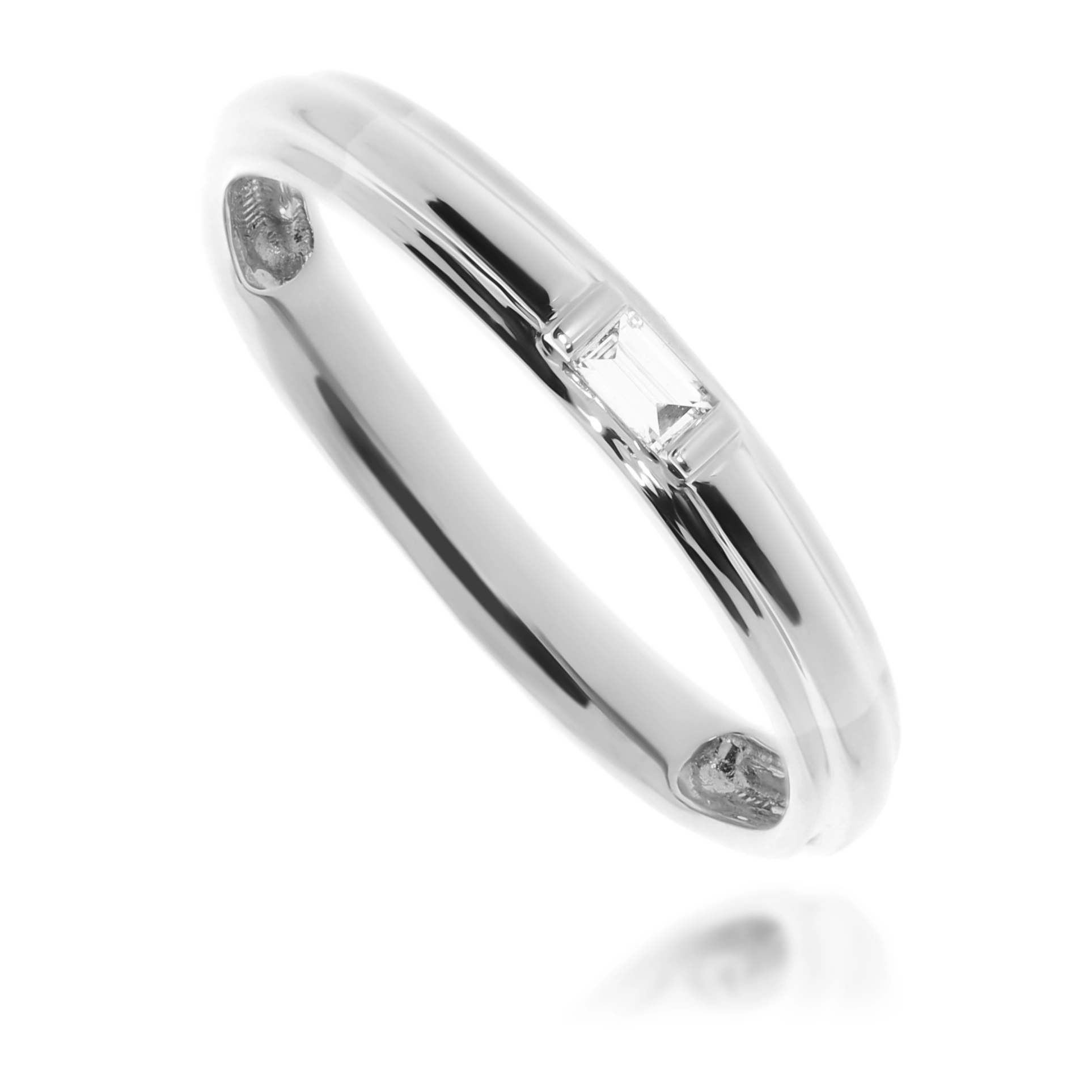 Žiedo dizainas yra minimalistinis, tačiau išskirtinis, su vienu pagrindiniu deimantu, kurio bendra masė siekia 0,05 ct. Deimantas pasižymi VS1 švarumu ir I spalva, garantuojančia jo spindesį ir nepriekaištingą kokybę. Žiedo briaunos plotis apačioje yra 3 mm, o viršutinės dalies plotis/ilgis taip pat 3 mm, sukuriant harmoningą ir patogų nešioti papuošalą. Šis žiedas yra daugiau nei tiesiog juvelyrikos dirbinys – tai meilės ir atsidavimo įžadas, kuris paliks neišdildomus prisiminimus ir taps brangiu šeimos reliktu.