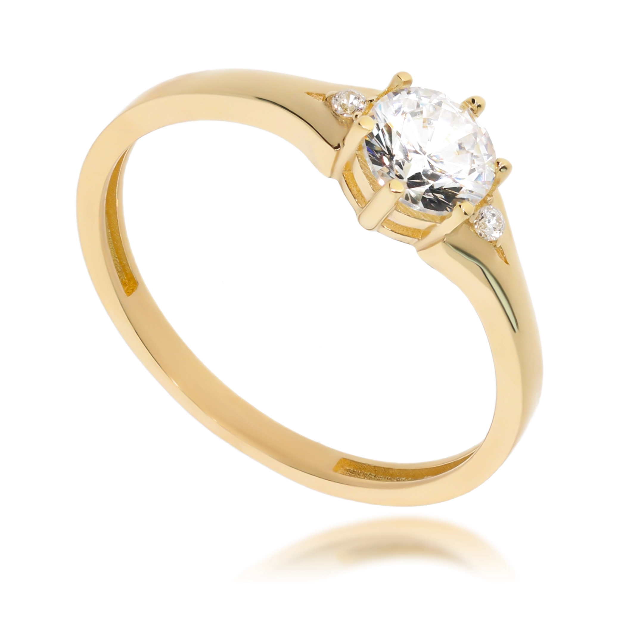 Elegantiškas moteriškas geltono aukso žiedas su cirkoniais 585