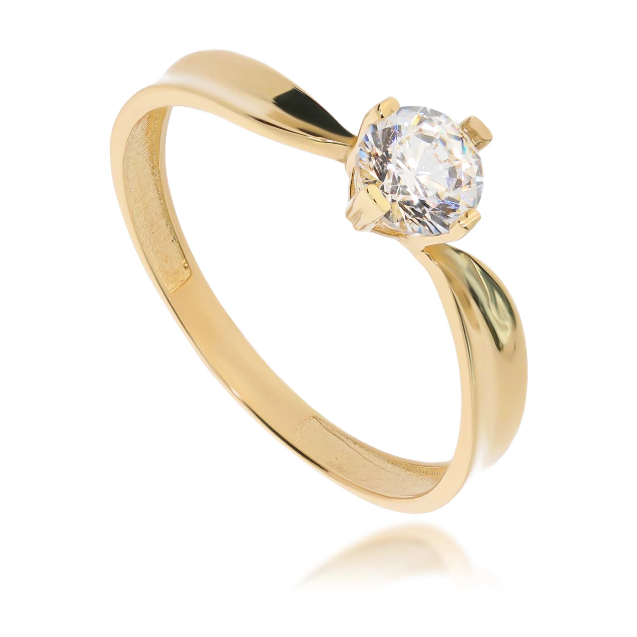 Elegantiškas moteriškas geltono aukso žiedas su cirkoniu 585