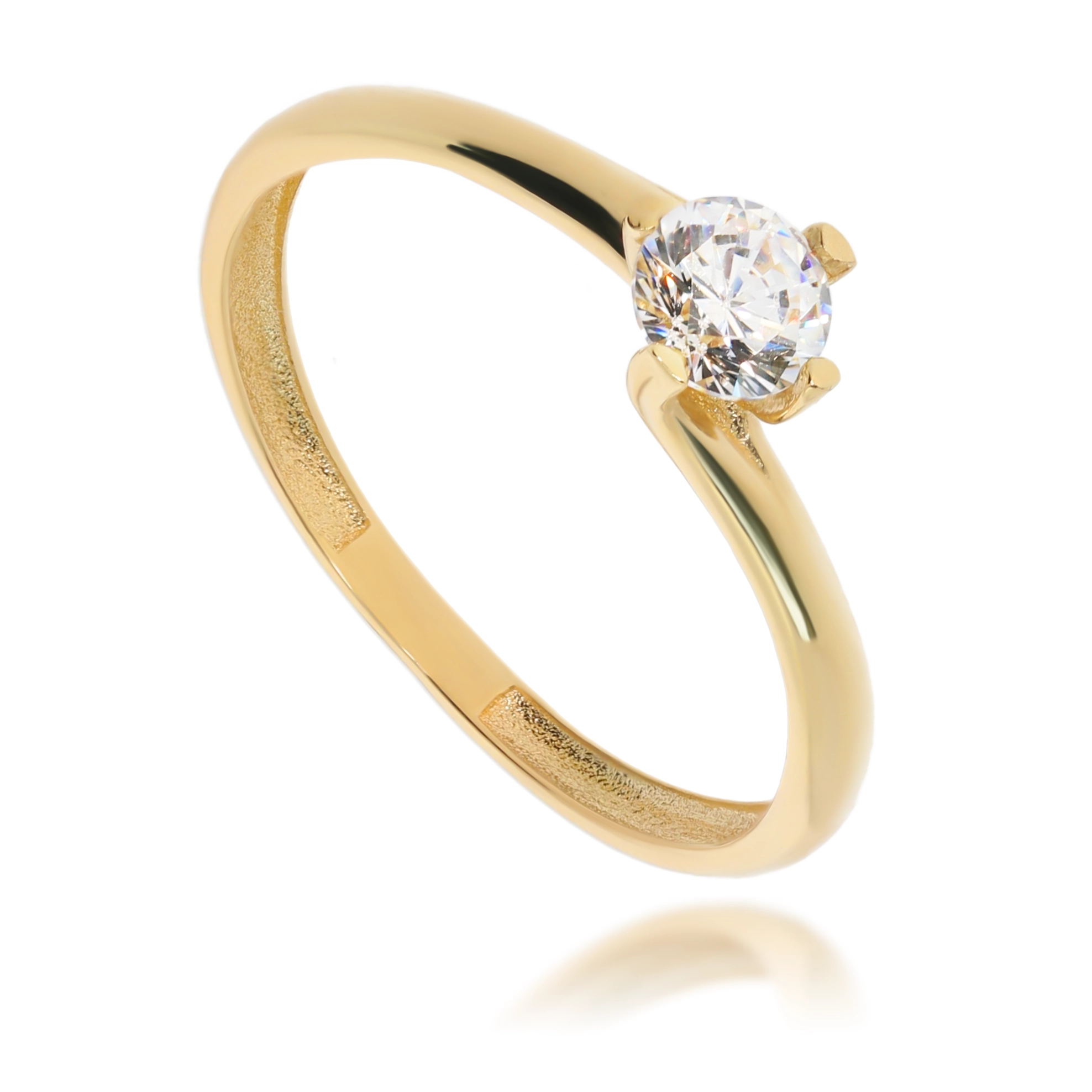 Elegantiškas moteriškas geltono aukso žiedas su cirkoniu 585