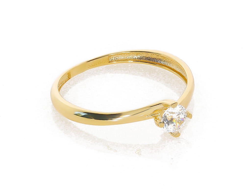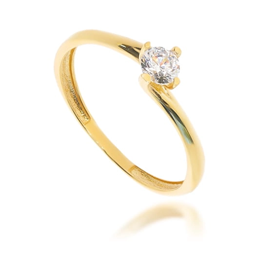 Elegantiškas moteriškas geltono aukso žiedas su cirkoniu 585