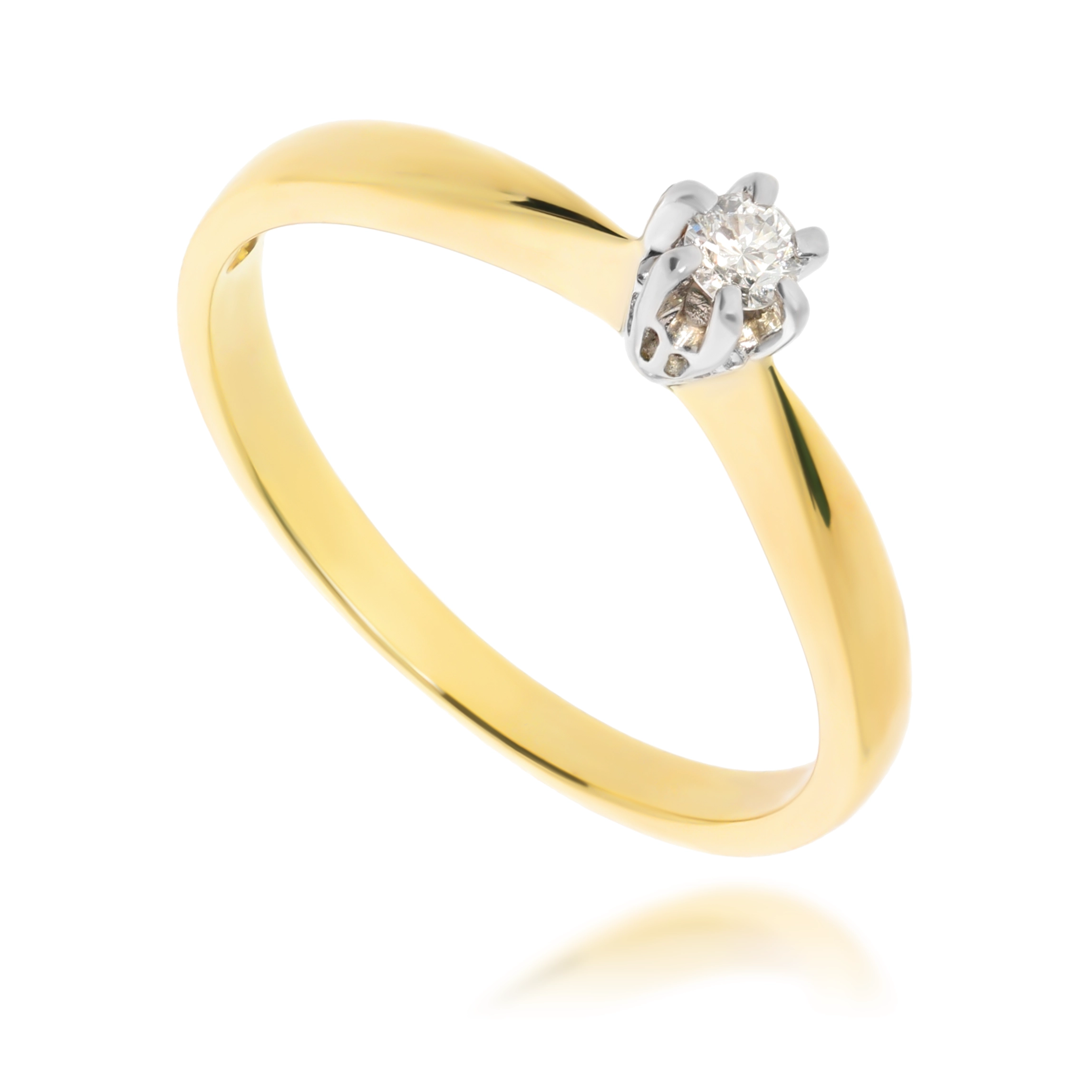 Elegantiškas moteriškas geltono ir balto aukso žiedas su deimantu 585