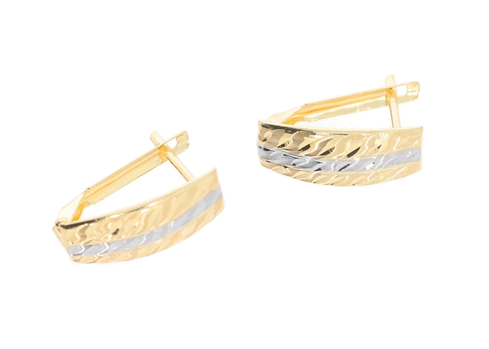 Elegantiški moteriški dviejų spalvų aukso auskarai 585