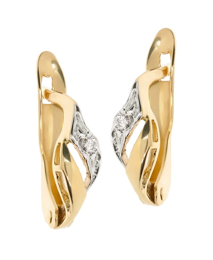 Elegantiški moteriški dviejų spalvų aukso auskarai su cirkoniais 585
