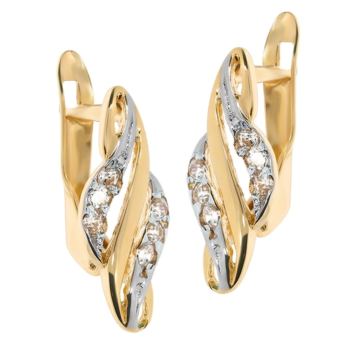 Elegantiški moteriški dviejų spalvų aukso auskarai su cirkoniais 585