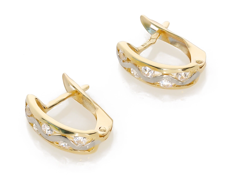 Elegantiški moteriški dviejų spalvų aukso auskarai su cirkoniais 585