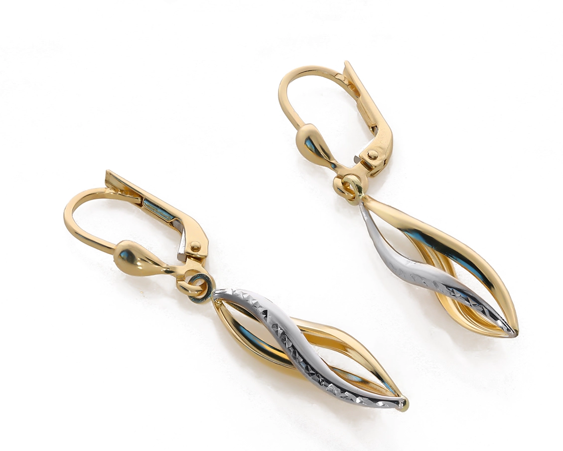 Elegantiški moteriški dviejų spalvų aukso kabantys auskarai 585