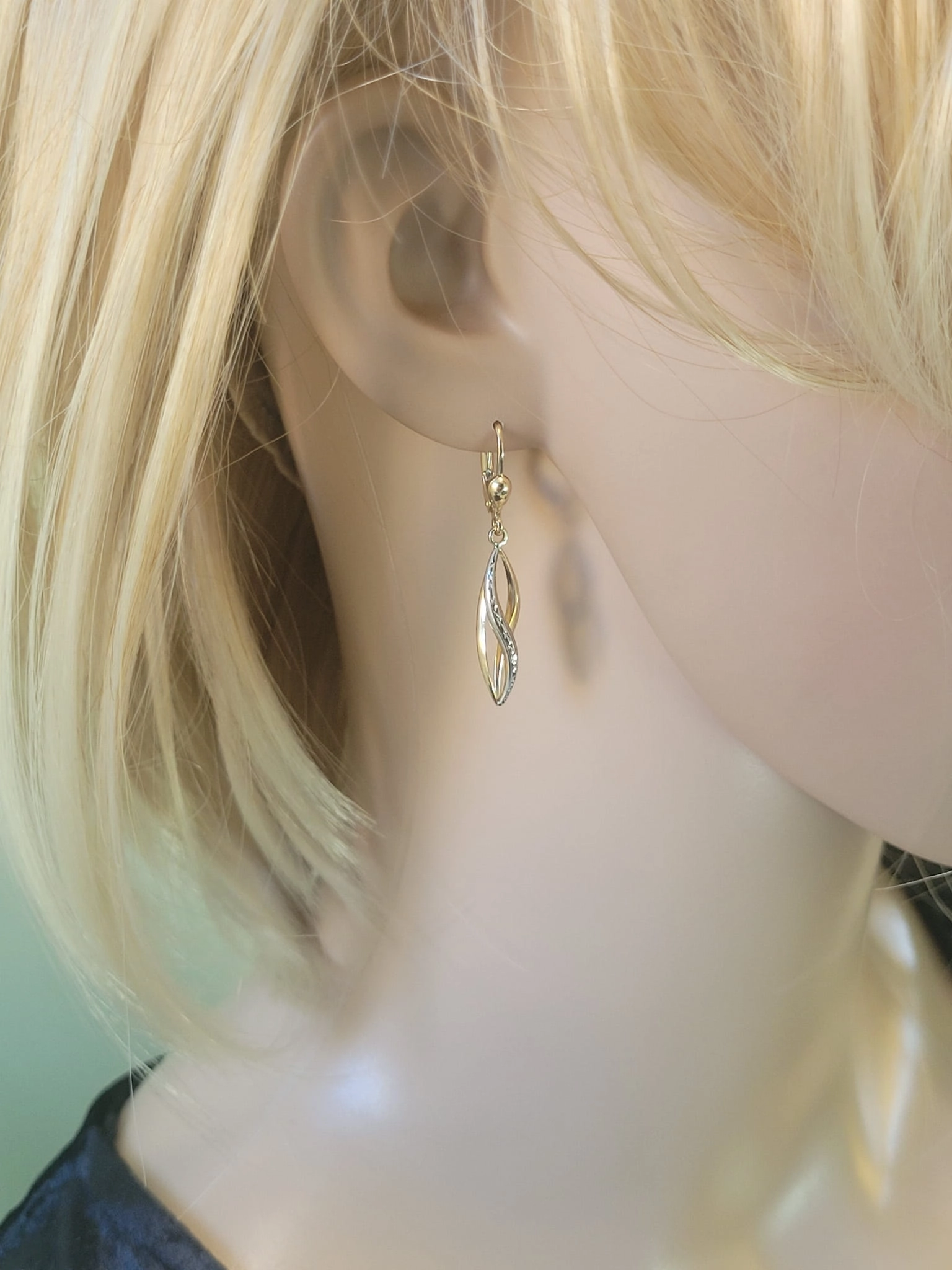 Pasinerkite į elegancijos ir išskirtinumo pasaulį su šiais nuostabiais dviejų spalvų aukso auskarais. Tai ne tik papuošalas, tai – meno kūrinys, sukurtas pabrėžti Jūsų individualumą ir suteikti pasitikėjimo kiekvieną dieną.
