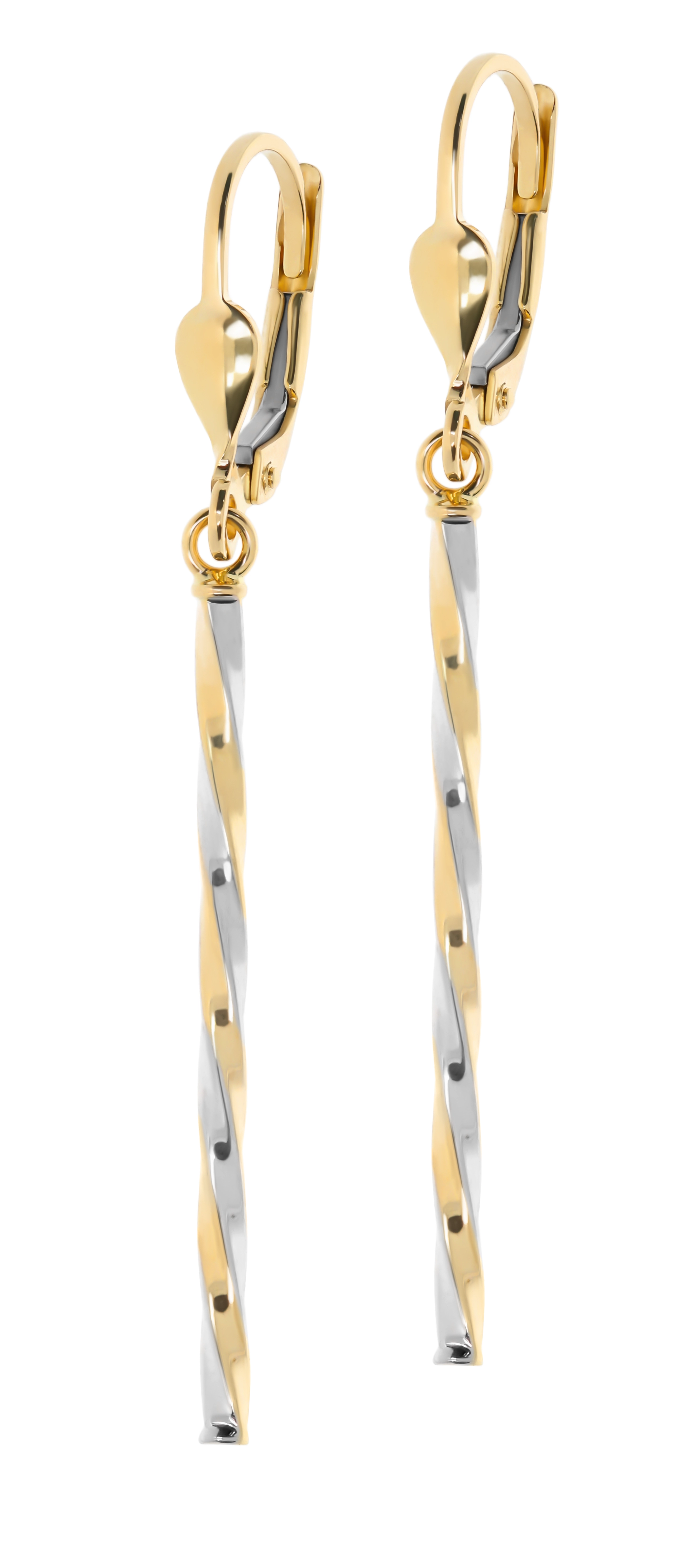 Elegantiški moteriški dviejų spalvų aukso kabantys auskarai 585