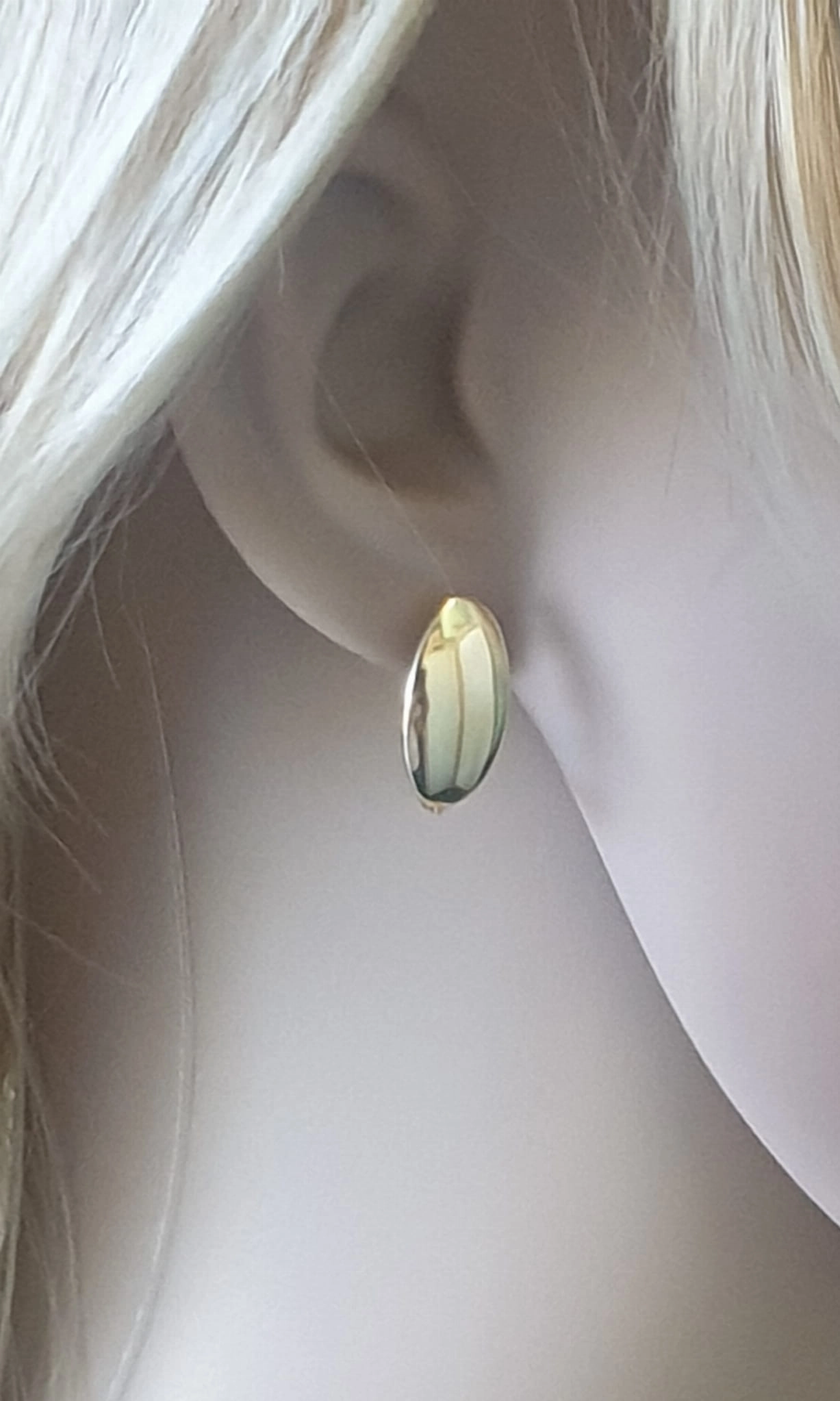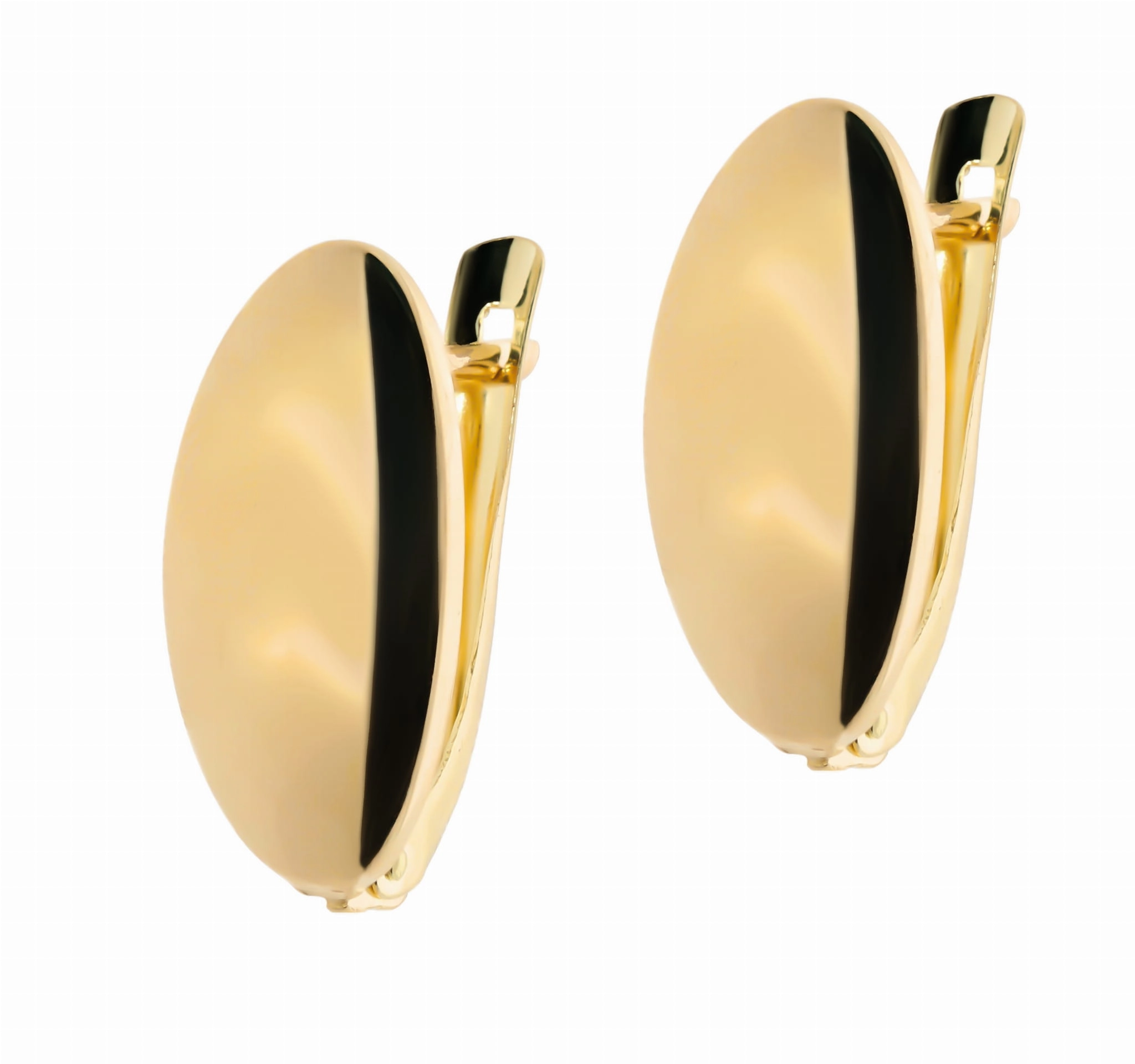 Jų išskirtinė forma – elegantiškas, lygus, ovalus paviršius, atspindintis šviesą ir suteikiantis veidui švelnaus spindesio. Minimalistinis, tačiau įspūdingas dizainas leidžia juos derinti tiek prie kasdienės aprangos, tiek prie vakarinio ansamblio, suteikiant Jūsų įvaizdžiui pasitikėjimo ir žavesio. Auskarų ilgis yra 1,9 cm, o plotis – 9 mm, todėl jie yra pakankamai pastebimi, bet ne per daug masyvūs, idealiai tinkantys patogiam nešiojimui visą dieną.