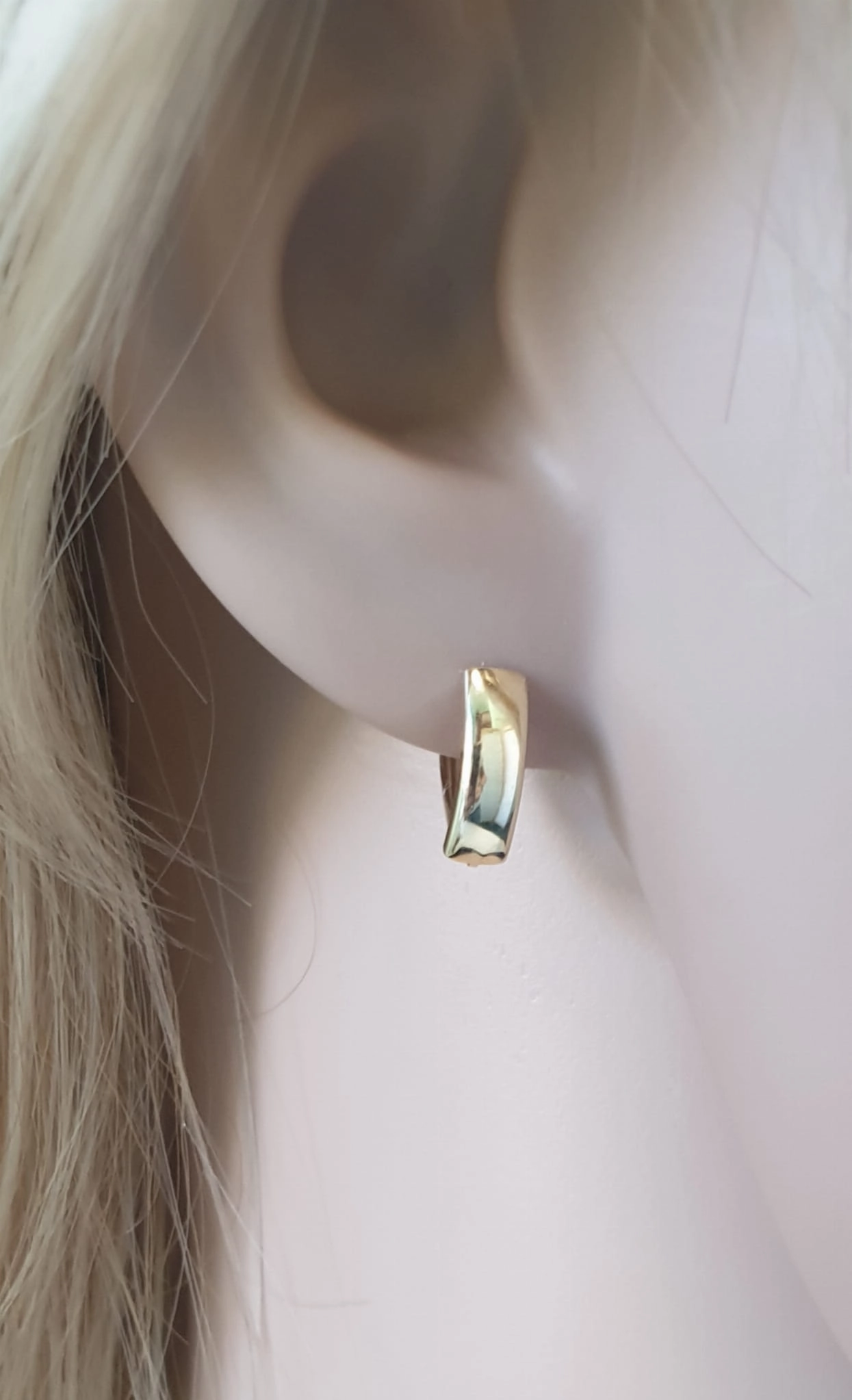 Šie auskarai, pagaminti iš aukščiausios kokybės 585 prabos geltono aukso, pasižymi minimalistiniu, tačiau išraiškingu dizainu. Jų lenkta, lygios briaunos forma švelniai apglėbia ausies spenelį, suteikdama patogumo ir elegancijos jausmą. Matmenys: ilgis 1,2 cm, plotis 4 mm. Šie auskarai yra puikus pasirinkimas tiek kasdienai, tiek ypatingoms progoms, pabrėžiant Jūsų individualumą ir stiliaus pojūtį. Tai puiki dovana sau ar brangiam žmogui, kuri taps neatsiejama juvelyrikos kolekcijos dalimi ir primins apie išskirtinį skonį.