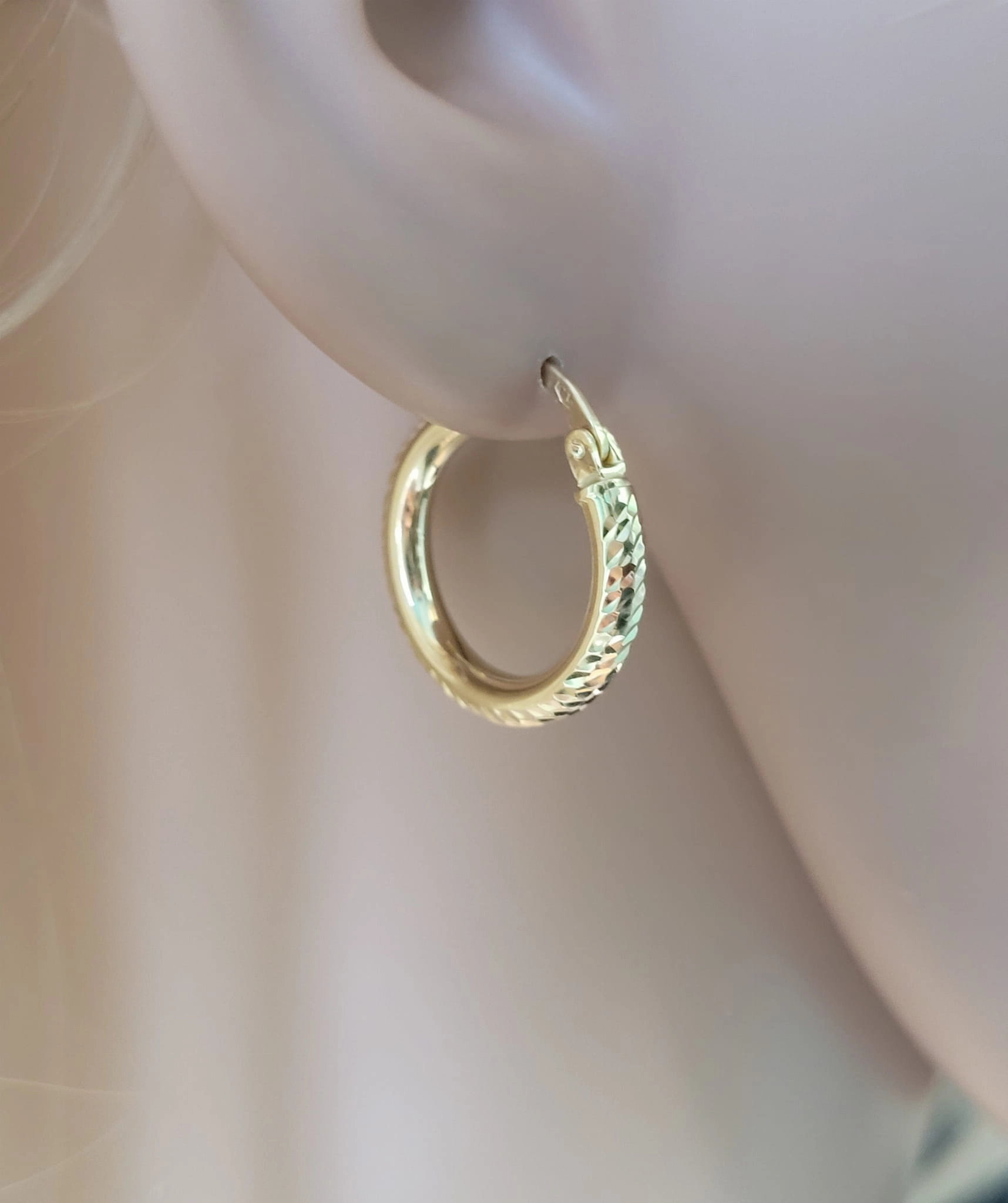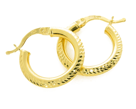 Šie klasikinio dizaino auskarai, kurių skersmuo siekia 2,0 cm, o plotis – 3,2 mm, puikiai tinka tiek kasdieniam nešiojimui, tiek ypatingoms progoms. Jų subtilus, bet kartu ir išraiškingas dizainas su smulkiais raštais suteikia jiems išskirtinumo ir žavesio, pabrėžiant Jūsų individualumą. Tai puiki dovana sau ar brangiam žmogui, norint išreikšti romantiką ir dėmesį. Auskarai lankeliai – tai juvelyrikos klasika, kuri niekada neišeina iš mados ir puikiai dera prie įvairių stilių bei aprangos.