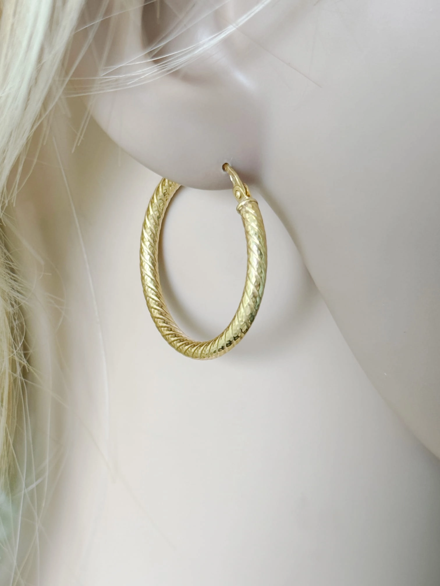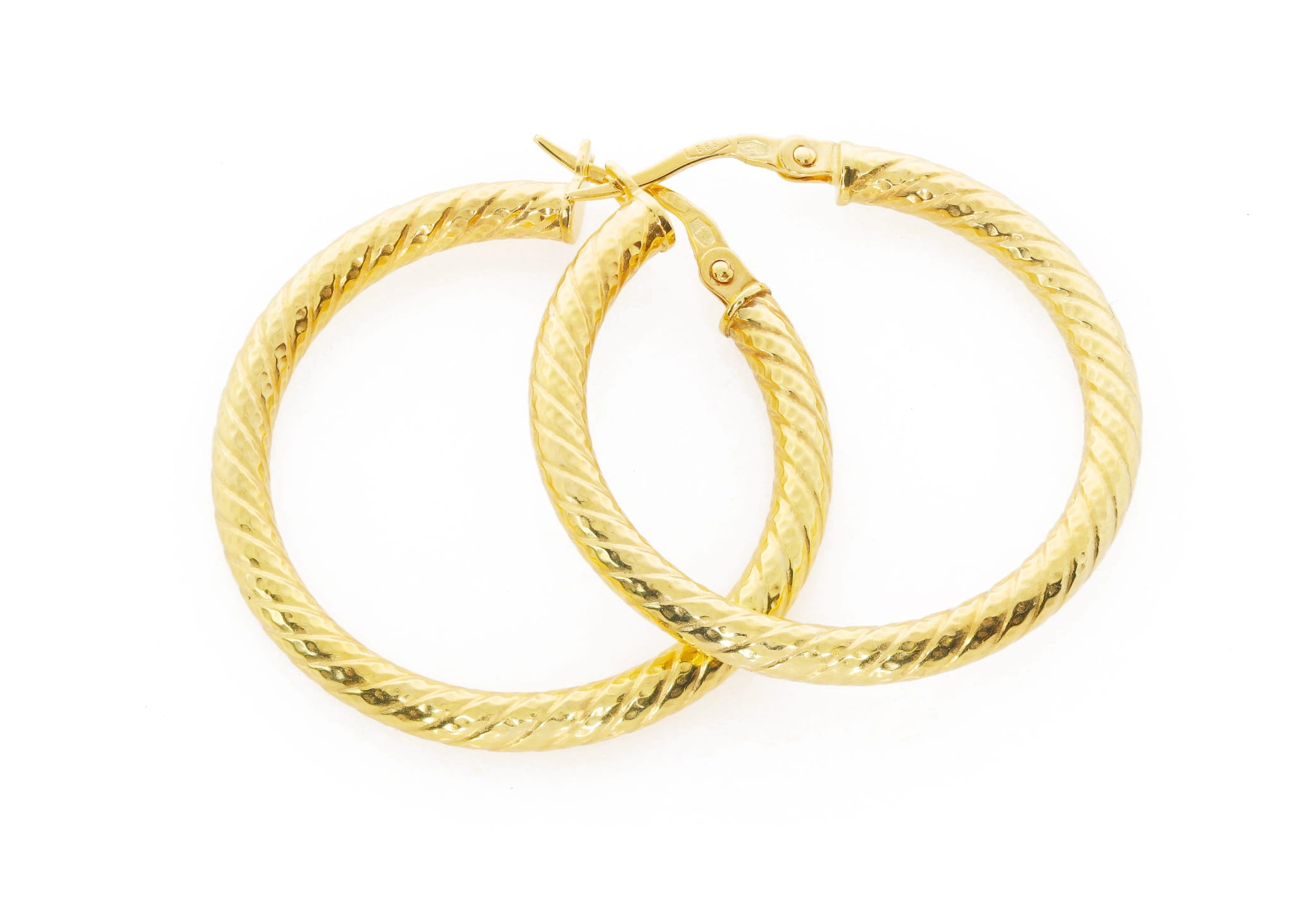 Pajuskite tikrą eleganciją su šiais nuostabiais geltono aukso auskarais lankeliais, kurie taps neatsiejama Jūsų stiliaus dalimi. Pagaminti iš aukščiausios kokybės 585 prabos aukso, šie auskarai spinduliuoja prabanga ir rafinuotumu. Jų unikalus raštas, primenantis subtilų virvelės pynimą, suteikia klasikinės lankelių formos auskarams modernumo ir išskirtinumo. Kiekviena detalė apgalvota iki smulkmenų, kad Jūs jaustumėtės patogiai ir pasitikinčiai savimi.