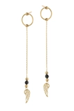 Elegantiški moteriški geltono aukso auskarai „Sparnai“ su juodais cirkoniais 585