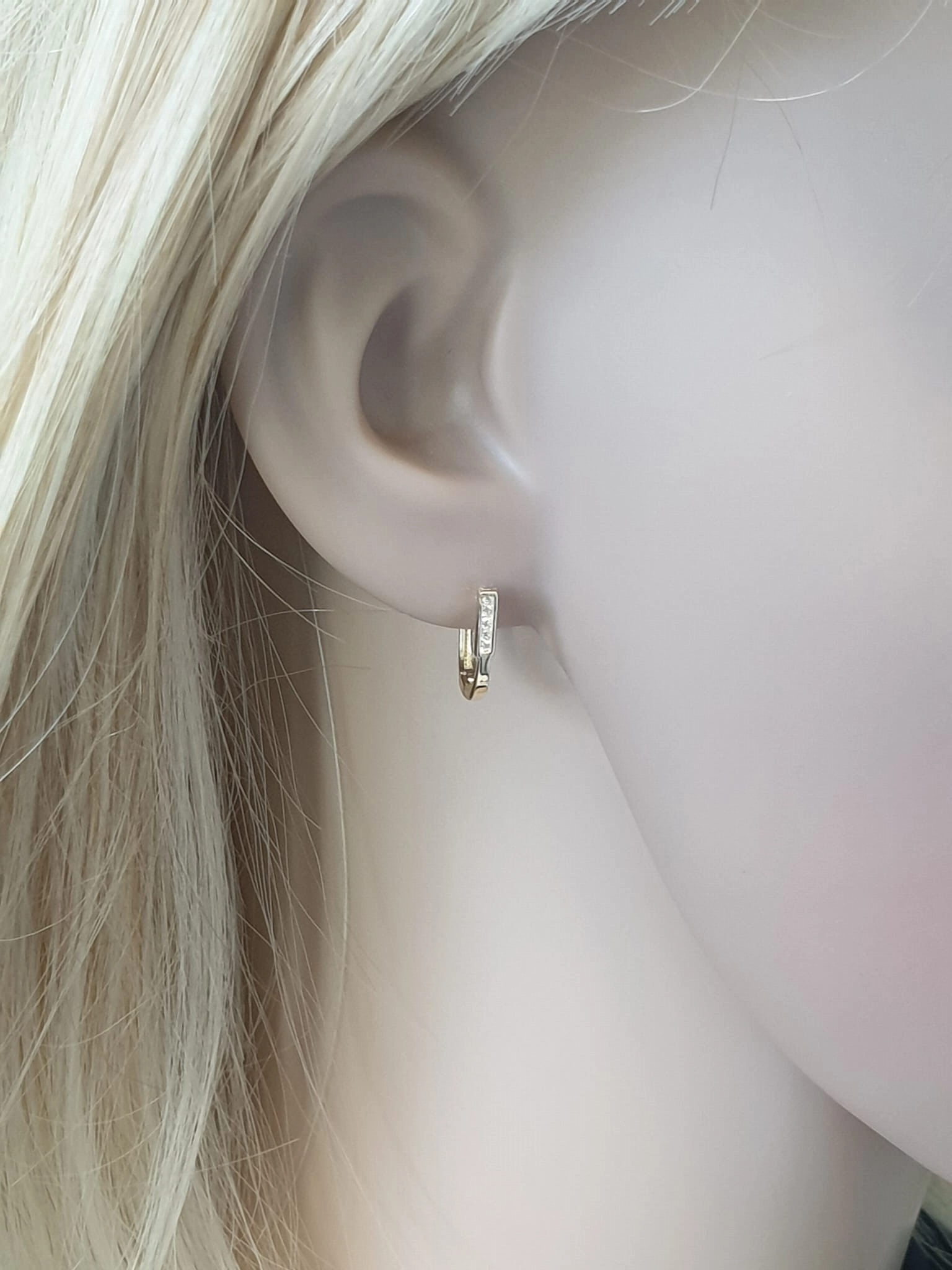 Šie auskarai pasižymi moderniu ir universaliu dizainu, kuris puikiai derės tiek prie kasdienio, tiek prie iškilmingo įvaizdžio. Jų ilgis yra 1,2 cm, o plotis – 2 mm, todėl jie yra pakankamai pastebimi, tačiau ne per daug įkyrūs, idealiai tinkantys moterims, vertinančioms rafinuotumą. Švytintys cirkoniai, išdėstyti ant auskarų briaunos, suteikia jiems papildomo žavesio ir šviesos, priversdami juos spindėti su kiekvienu judesiu. Tai puiki dovana sau ar artimajai, norint paminėti ypatingą progą ar tiesiog praskaidrinti dieną.