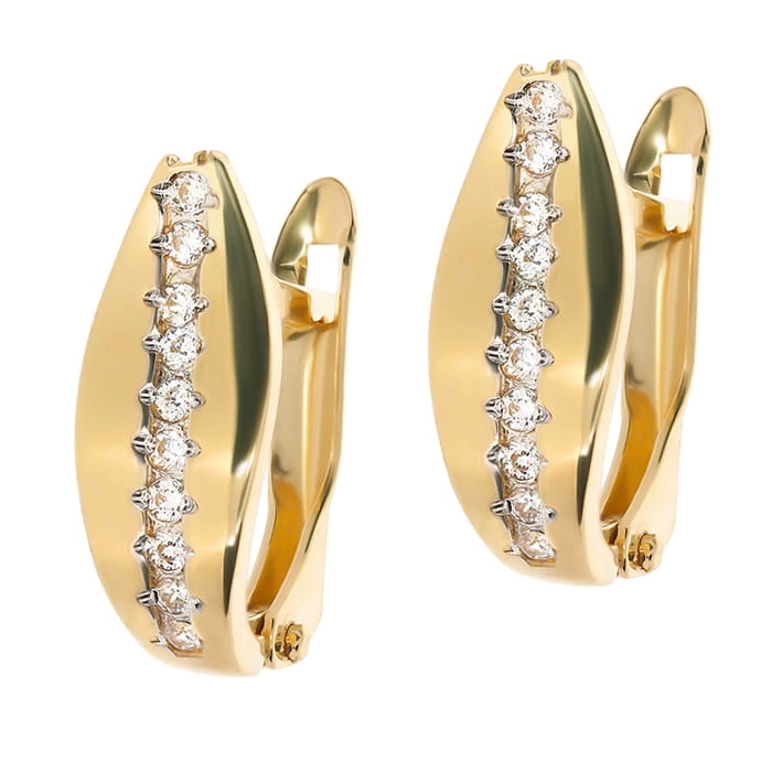 Elegantiški moteriški geltono aukso auskarai su cirkoniais 585
