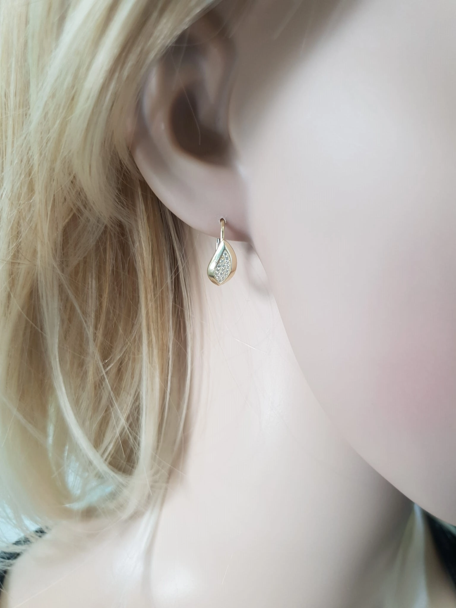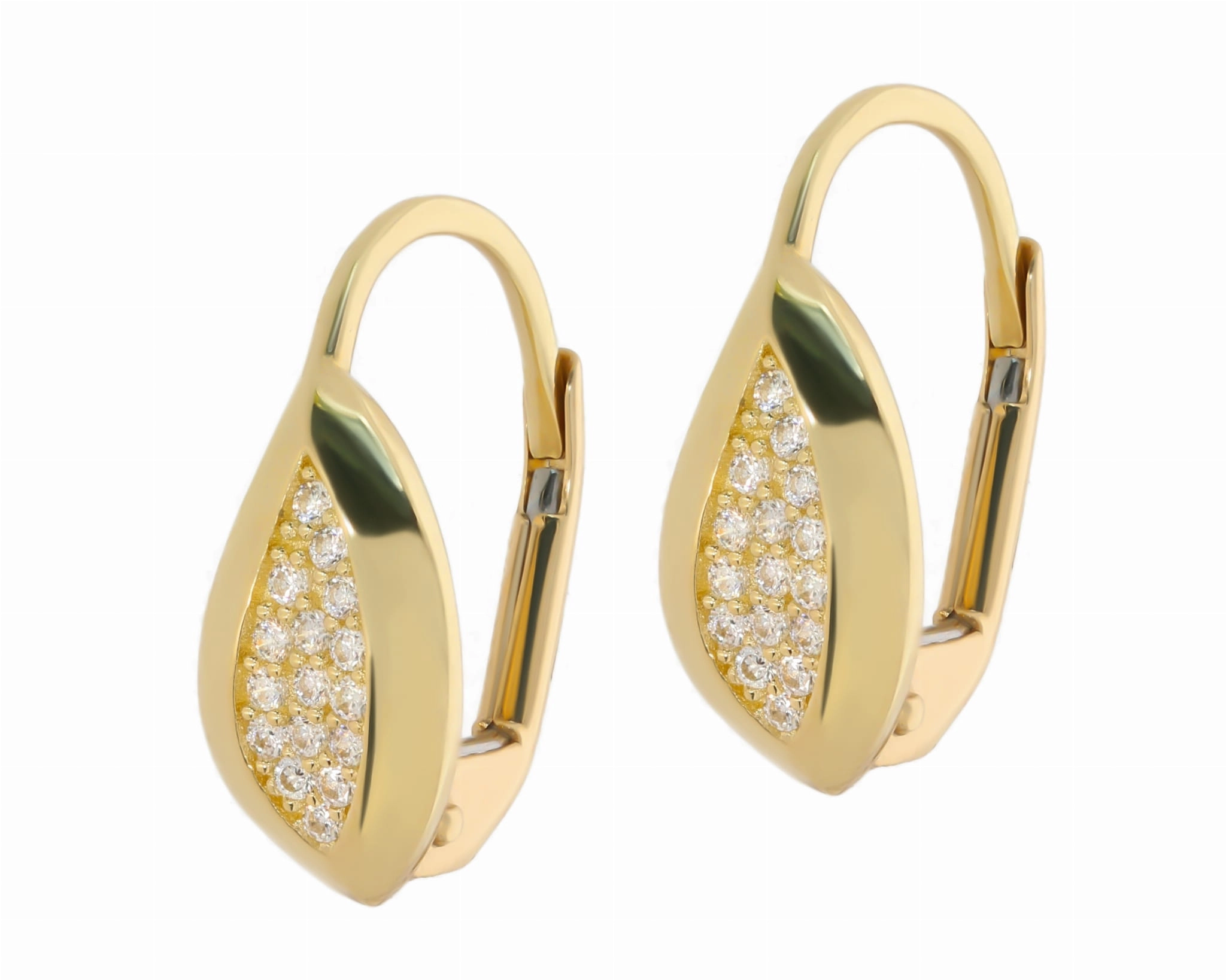 Elegantiški moteriški geltono aukso auskarai su cirkoniais 585