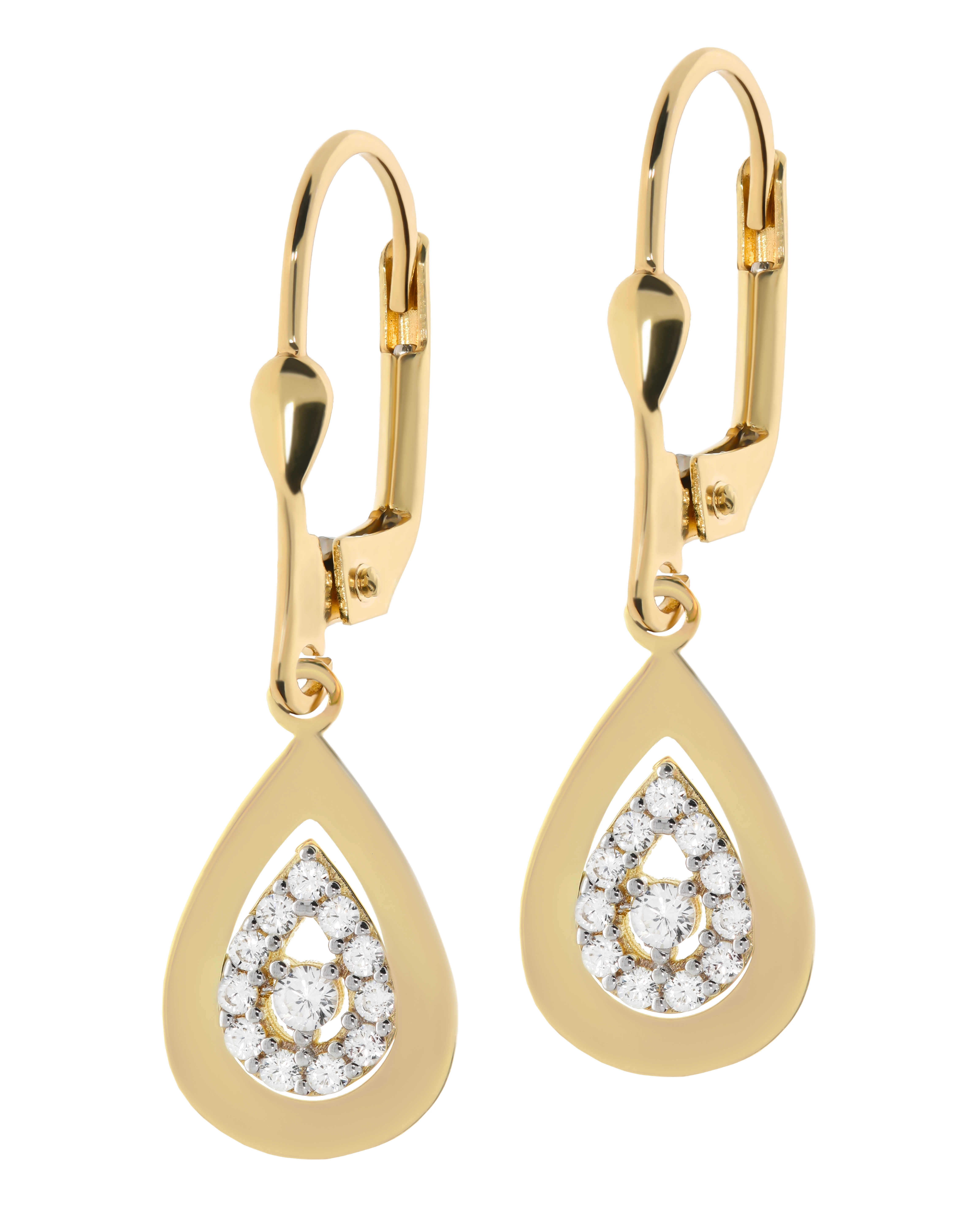 Elegantiški moteriški geltono aukso auskarai su cirkoniais 585