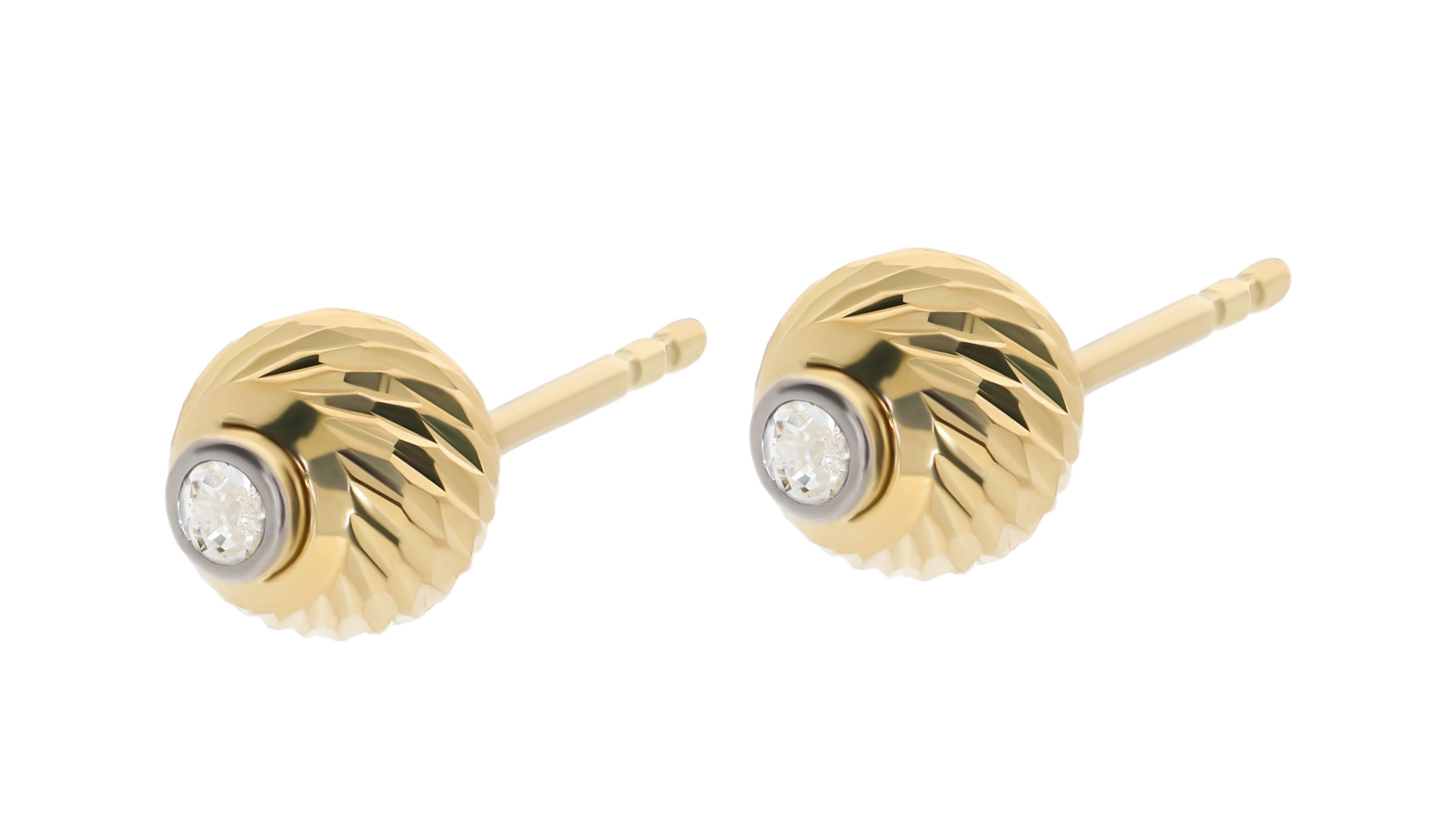 Auskarai pasižymi unikaliu dizainu: jų paviršius yra dailiai raižytas, sukuriant įdomų ir akį traukiantį efektą, kuris atspindi šviesą su kiekvienu judesiu. Kiekvieno auskaro centre įmontuotas žėrintis baltas cirkonis, apsuptas baltojo aukso apvadu, suteikia jiems dar daugiau spindesio ir elegancijos. Šis kontrastas tarp geltono ir balto aukso sukuria rafinuotą ir modernų įvaizdį. Auskarų skersmuo yra 6 mm, todėl jie yra pakankamai pastebimi, bet ne per daug įkyrūs, puikiai tinkantys tiek kasdieniam nešiojimui, tiek ypatingoms progoms.