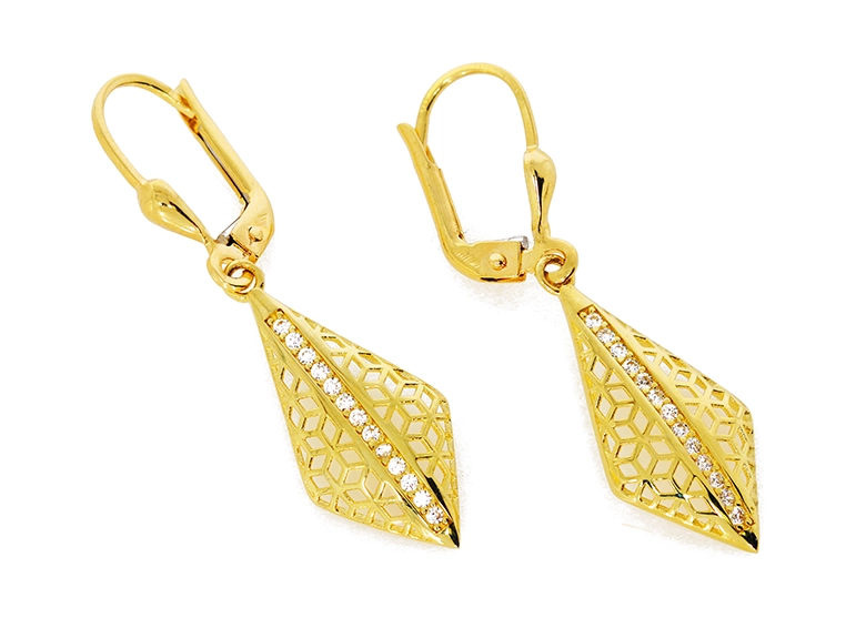 Elegantiški moteriški geltono aukso auskarai su cirkoniais 585
