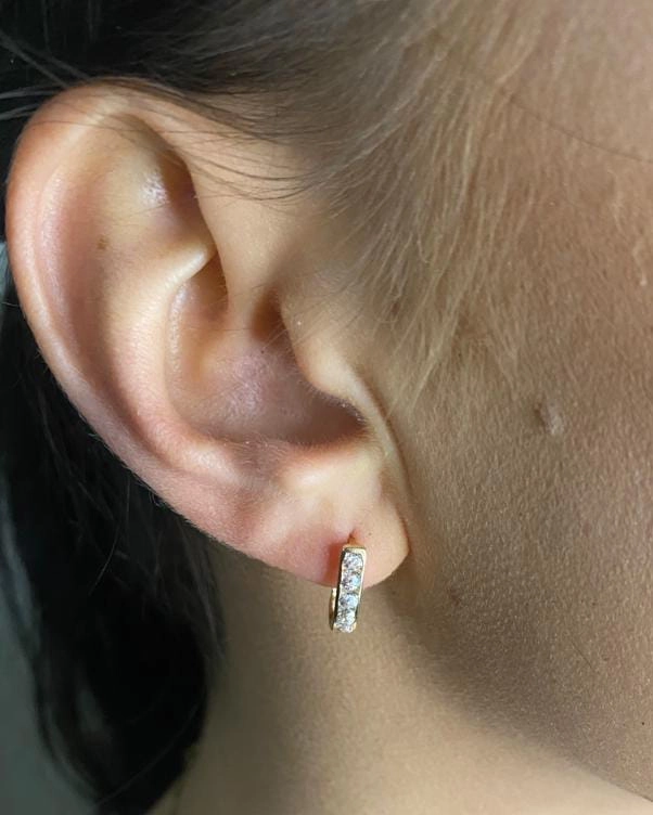 Šie auskarai, pagaminti iš aukščiausios kokybės 585 prabos geltono aukso, pasižymi klasikine, tačiau modernia forma. Jų subtilus dizainas su daugybe įmontuotų skaidrių cirkonių sukuria akinantį spindesį, kuris atspindi šviesą su kiekvienu judesiu. Šie auskarai puikiai tinka tiek kasdieniam dėvėjimui, suteikiant Jūsų įvaizdžiui prabangos, tiek ypatingoms progoms, pabrėžiant Jūsų šventinį stilių. Jų ilgis yra 1,3 cm, o plotis – 2,7 mm, todėl jie idealiai tinka moterims, ieškančioms subtilaus, bet pastebimo akcento.