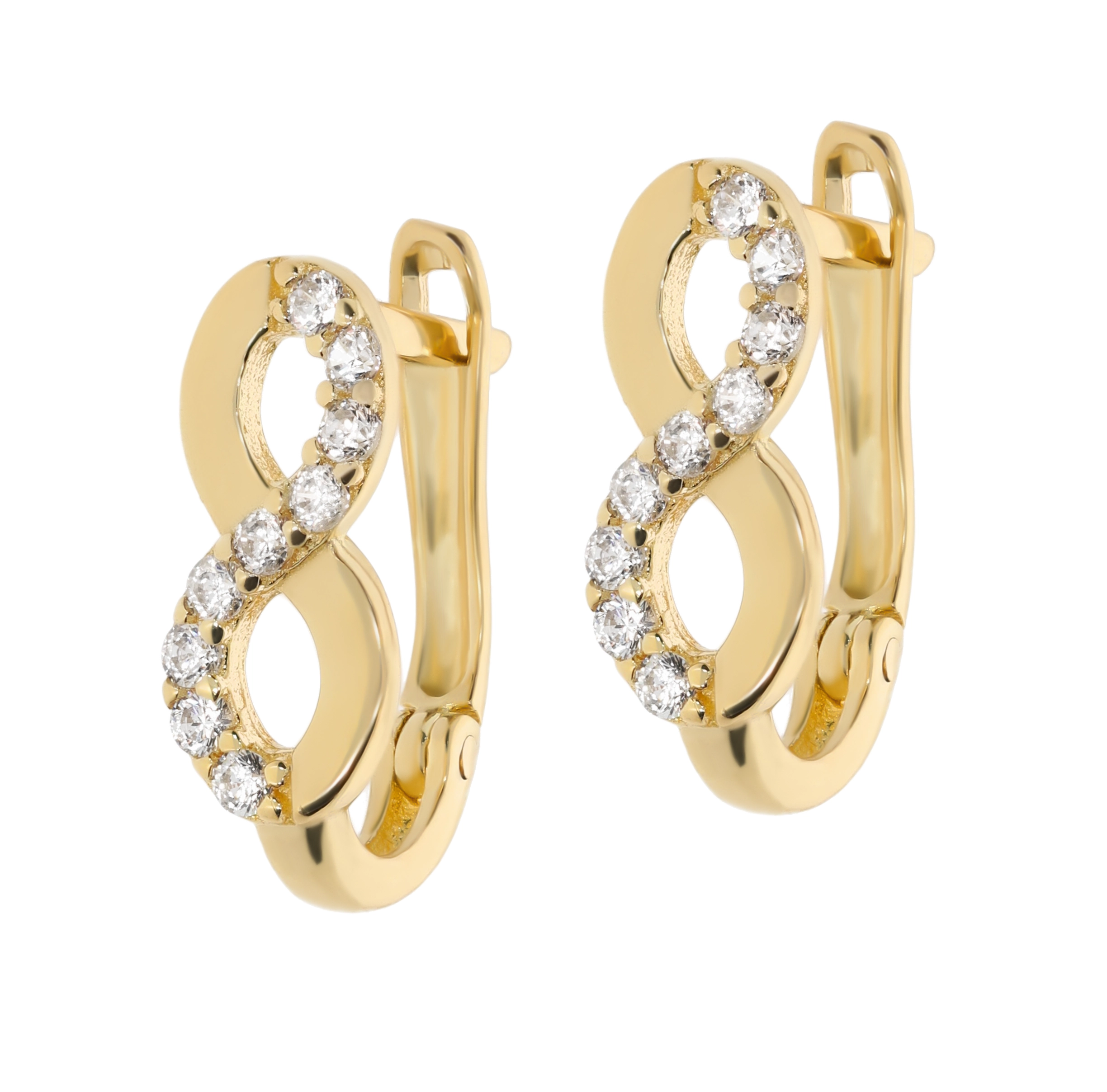 Elegantiški moteriški geltono aukso auskarai su cirkoniais „Begalybė“ 585