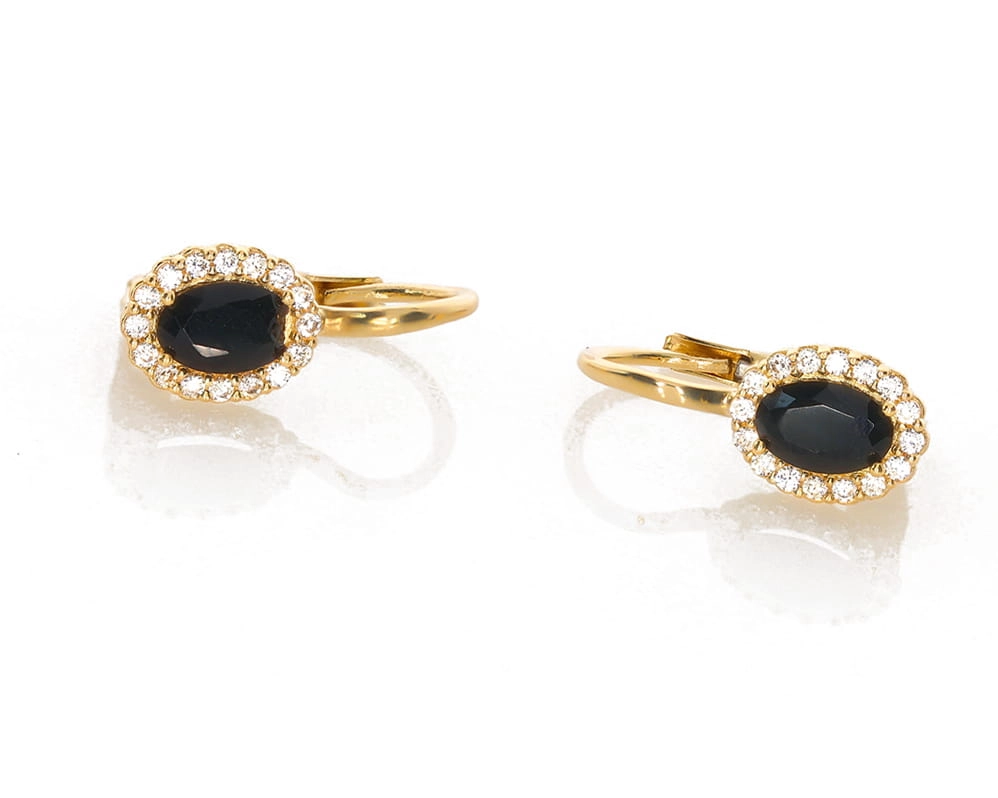 Elegantiški moteriški geltono aukso auskarai su juodais cirkoniais 585