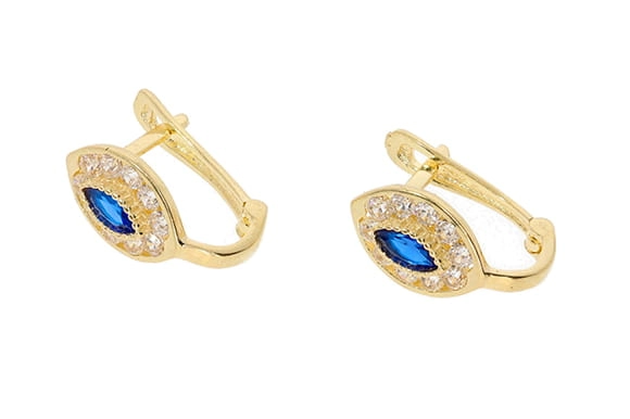 Kruopščiai pagaminti iš aukščiausios kokybės 585 prabos geltono aukso, šie auskarai pasižymi išskirtiniu dizainu. Jų ovalo formos centrinę dalį puošia ryškiai mėlynas cirkonis, apsuptas spindinčių, skaidrių cirkonių aureolės. Šis derinys sukuria žavingą kontrastą ir pritraukia žvilgsnius. Auskarų ilgis yra 1,2 cm, o plotis – 6,5 mm, todėl jie yra pakankamai pastebimi, tačiau ne per daug masyvūs, idealiai tinkantys tiek kasdieniam nešiojimui, tiek ypatingoms progoms.