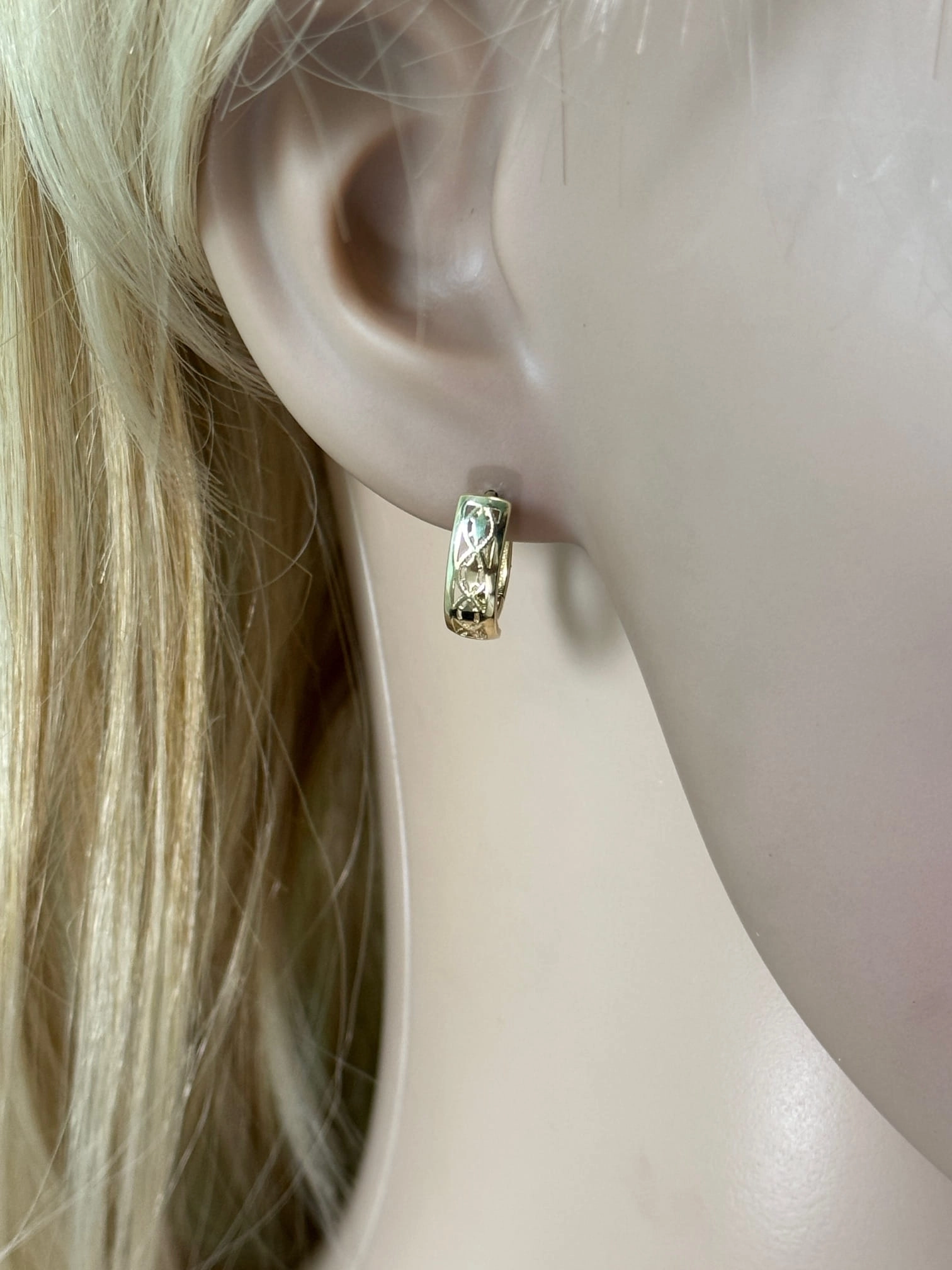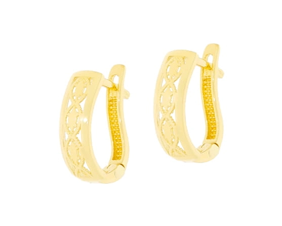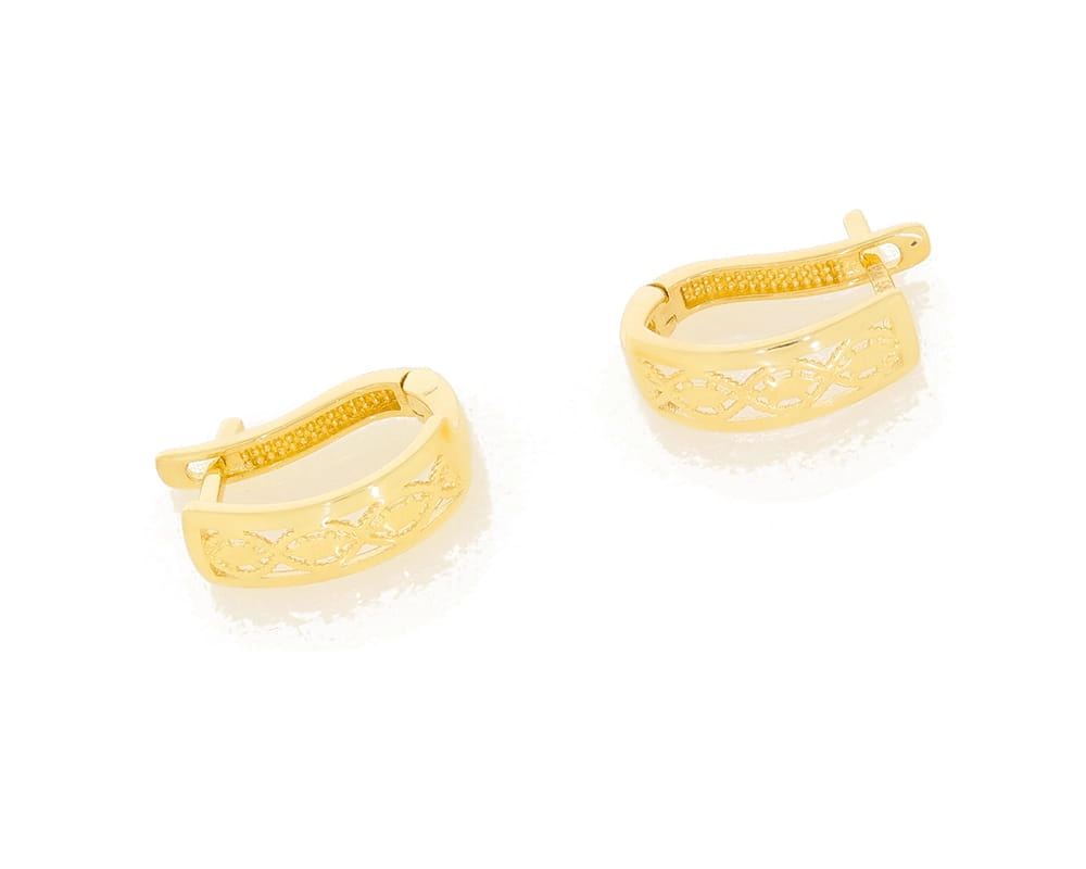 Kiekvienas auskaras pasižymi unikaliu raižiniu, kuris suteikia jiems subtilumo ir išskirtinumo. Atviras, ažūrinis dizainas sukuria lengvumo ir grakštumo įspūdį, leidžiantis šviesai žaisti per auksą ir atskleisti jo natūralų grožį. Šie auskarai yra puikus pasirinkimas moterims, vertinančioms klasikinį stilių su moderniu akcentu. Jų ilgis – 12,50 mm, o plotis – 4,40 mm, todėl jie yra pakankamai pastebimi, bet ne per daug įkyrūs, idealiai tinkantys tiek kasdieniam nešiojimui, tiek ypatingoms progoms.