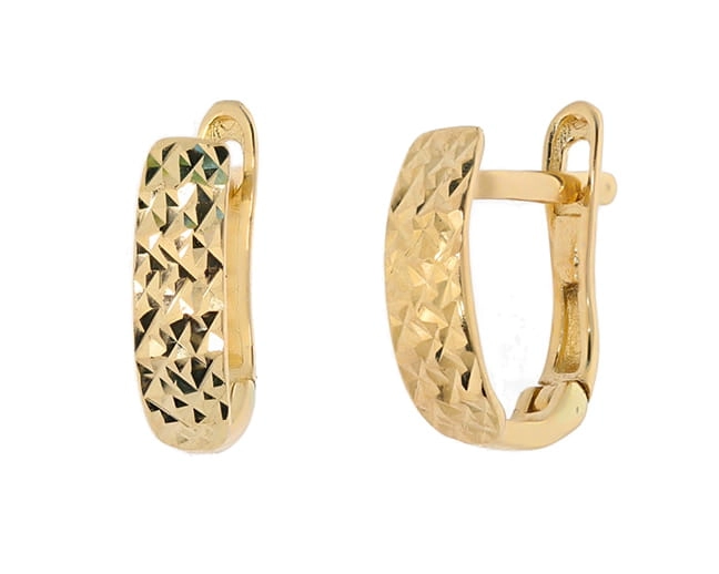 Elegantiški moteriški geltono aukso auskarai su raižyta briauna 585