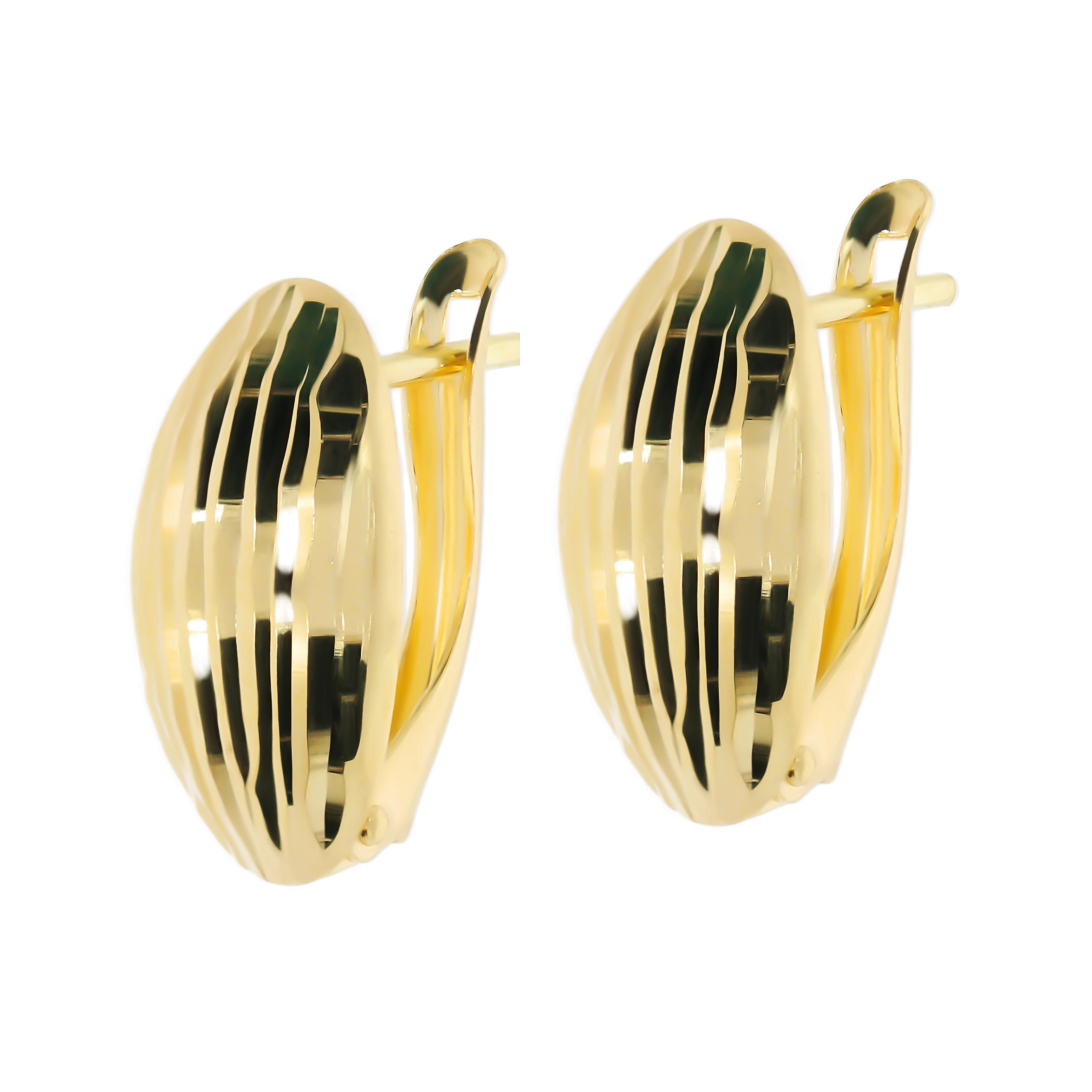 Elegantiški moteriški geltono aukso auskarai su raižytais paviršiais 585