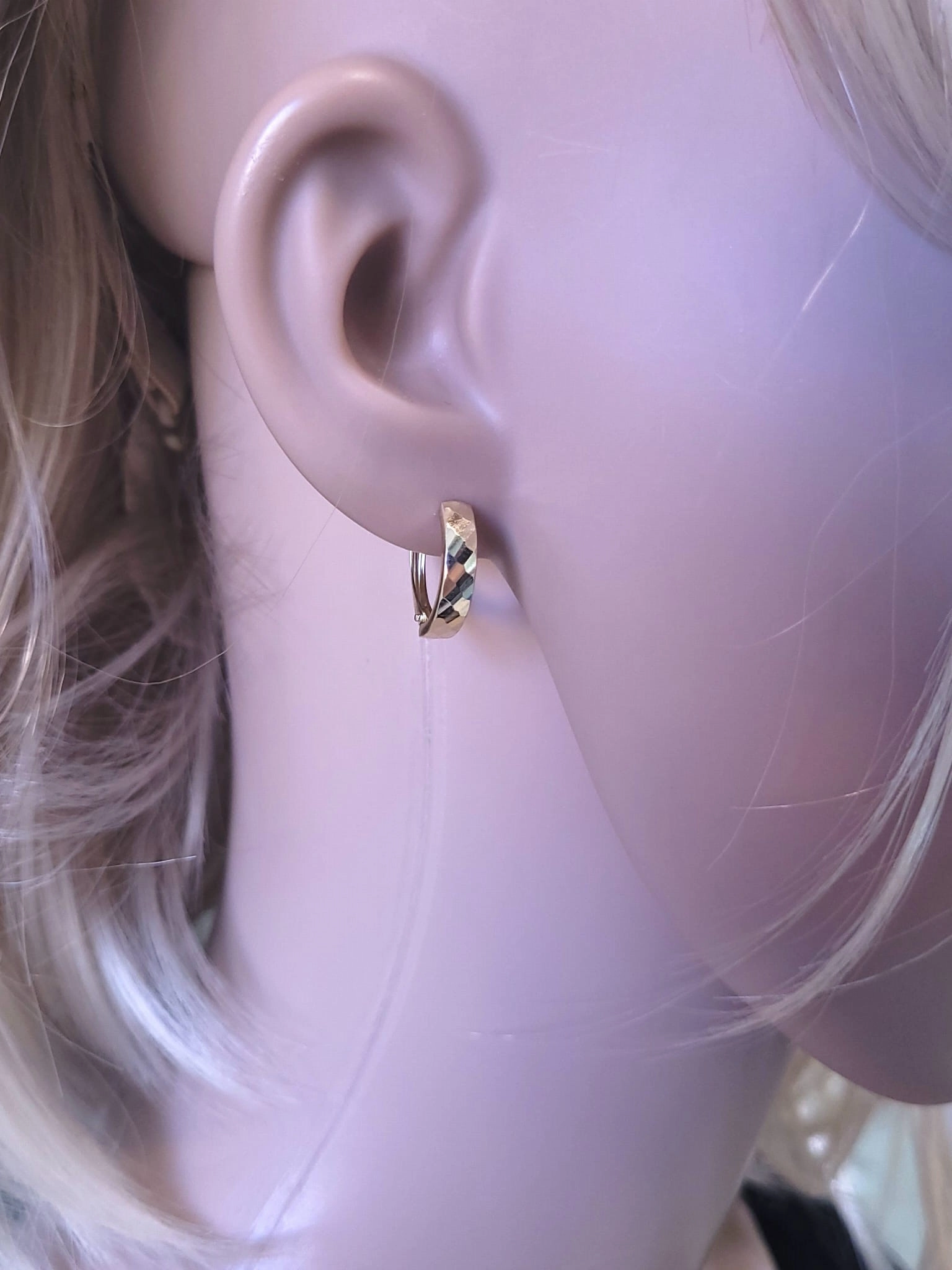 Šie moteriški auskarai pagaminti iš aukščiausios kokybės 585 prabos geltono aukso, garantuojančio ilgaamžiškumą ir nepriekaištingą išvaizdą. Jų dizainas išsiskiria subtiliai raižytu paviršiumi, kuris sukuria žaismingą šviesos atspindį ir suteikia auskarams išskirtinumo be jokių papildomų akmenų. Klasikinė, tačiau moderni forma puikiai dera prie įvairių veido bruožų ir aprangos stilių. Auskarų ilgis yra 1,6 cm, o plotis – 4,0 mm, todėl jie yra pakankamai pastebimi, bet ne per daug masyvūs, užtikrinantys patogumą visą dieną. Tai ideali dovana mylimai moteriai, norint išreikšti dėkingumą, meilę ar tiesiog nustebinti ją elegantišku ir praktišku papuošalu, kuris džiugins ilgus metus.