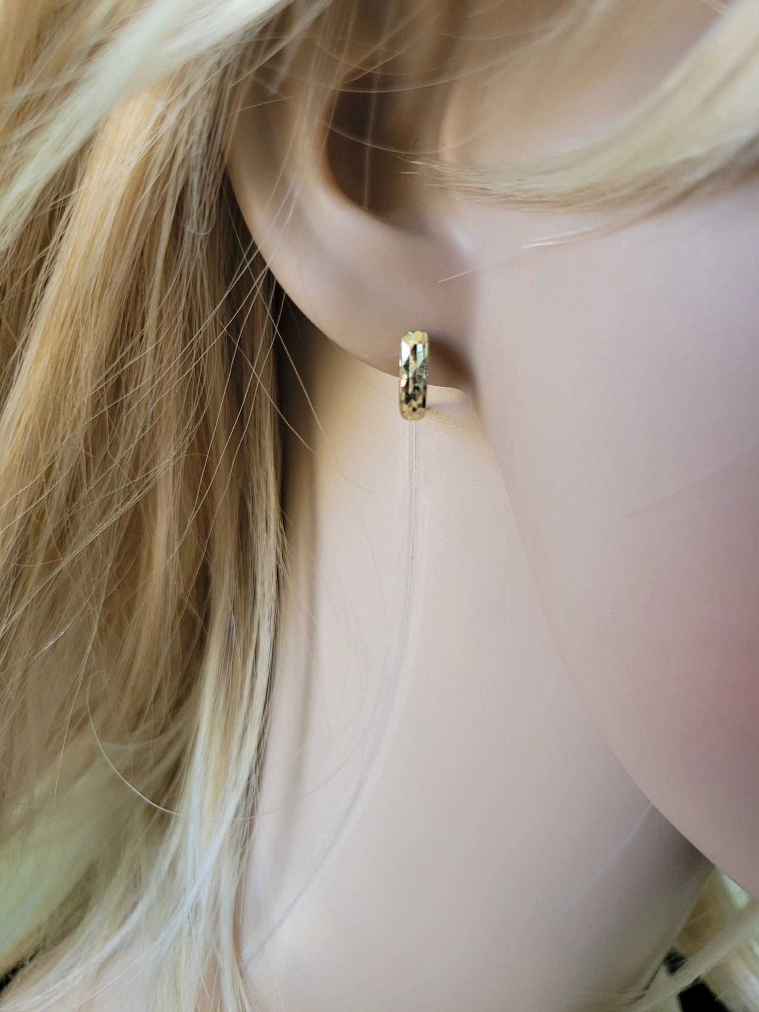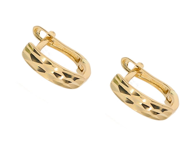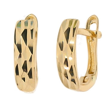 Elegantiški moteriški geltono aukso auskarai su raižytu paviršiumi 585