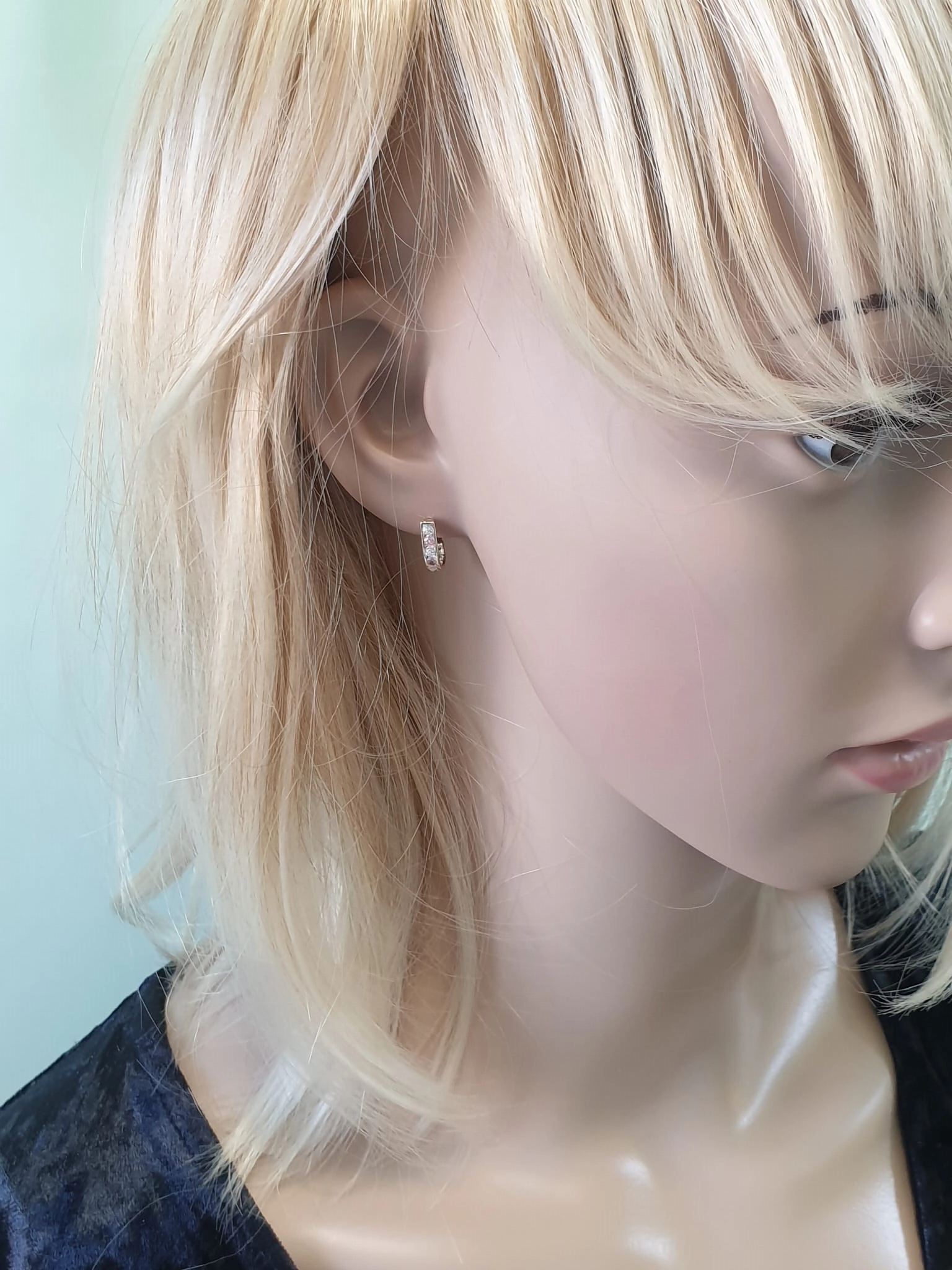 Atraskite nepakartojamą eleganciją su šiais nuostabiais geltono aukso auskarais, kurie taps neatsiejama Jūsų stiliaus dalimi. Šie auskarai, sukurti su meile ir preciziškumu, atspindi modernų dizainą, sujungiantį klasikinį aukso spindesį su žaismingais, bet subtiliais akcentais. Kiekvienas auskaras yra kruopščiai inkrustuotas rožiniais ir baltais cirkoniais, kurie sukuria akinantį šviesos žaismą ir suteikia Jūsų veidui švelnaus, romantiško švytėjimo.