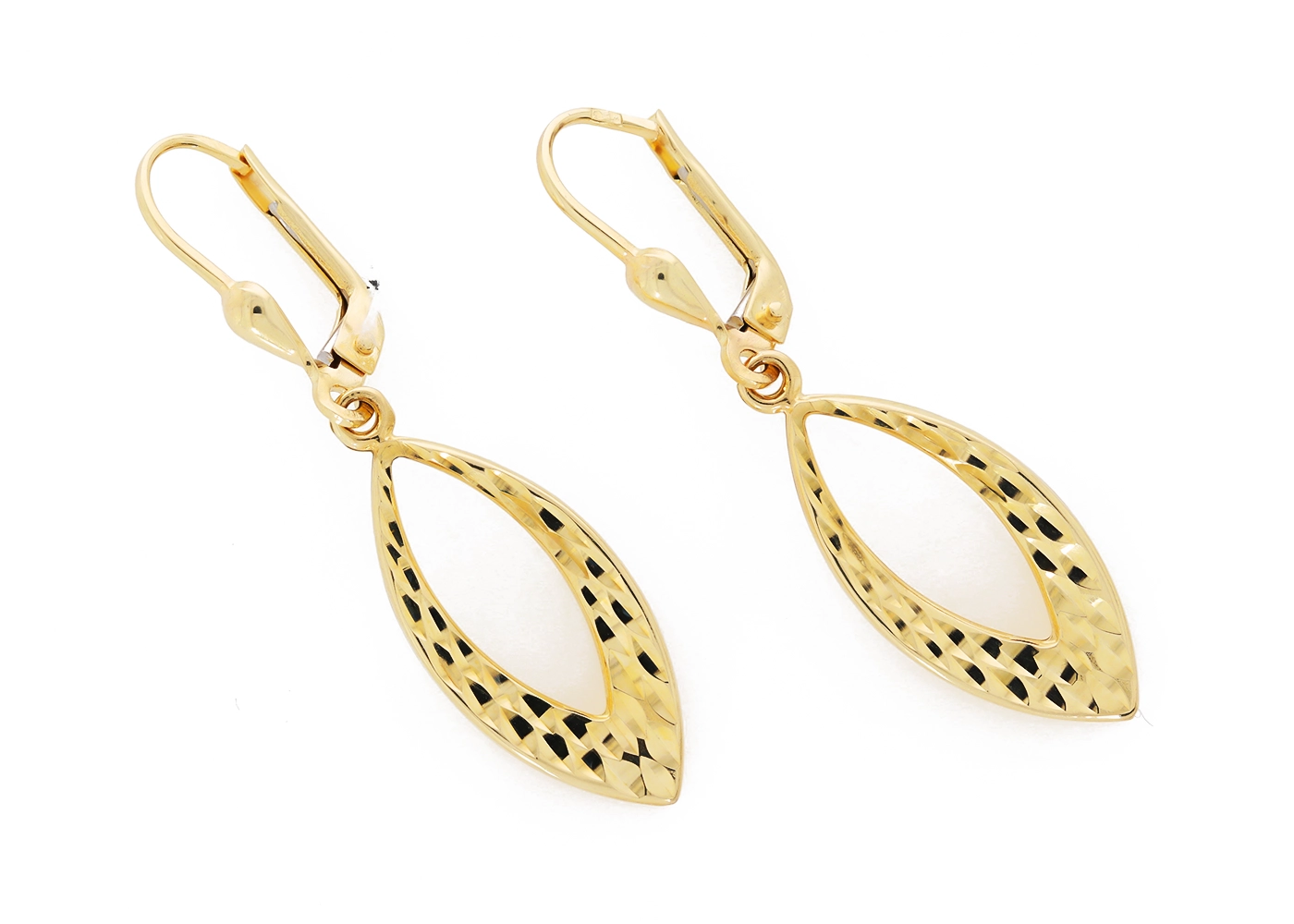 Elegantiški moteriški geltono aukso kabantys auskarai 585